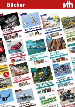 Die beiden Löschmonitore sind mit Hilfe der optionalen Wasserpumpe 7003/90 funktionsfähig und liegen dem Bausatz bei, ebenso die benötigten Kupplungen und Anschlüsse für die Schlauchführungen. Das Spantgerüst im Rumpf sieht den Einbau der Wasserpumpe bereits vor und die ausführlich gestaltete Bauanleitung zeigt genau deren Einbau und Anschluß.