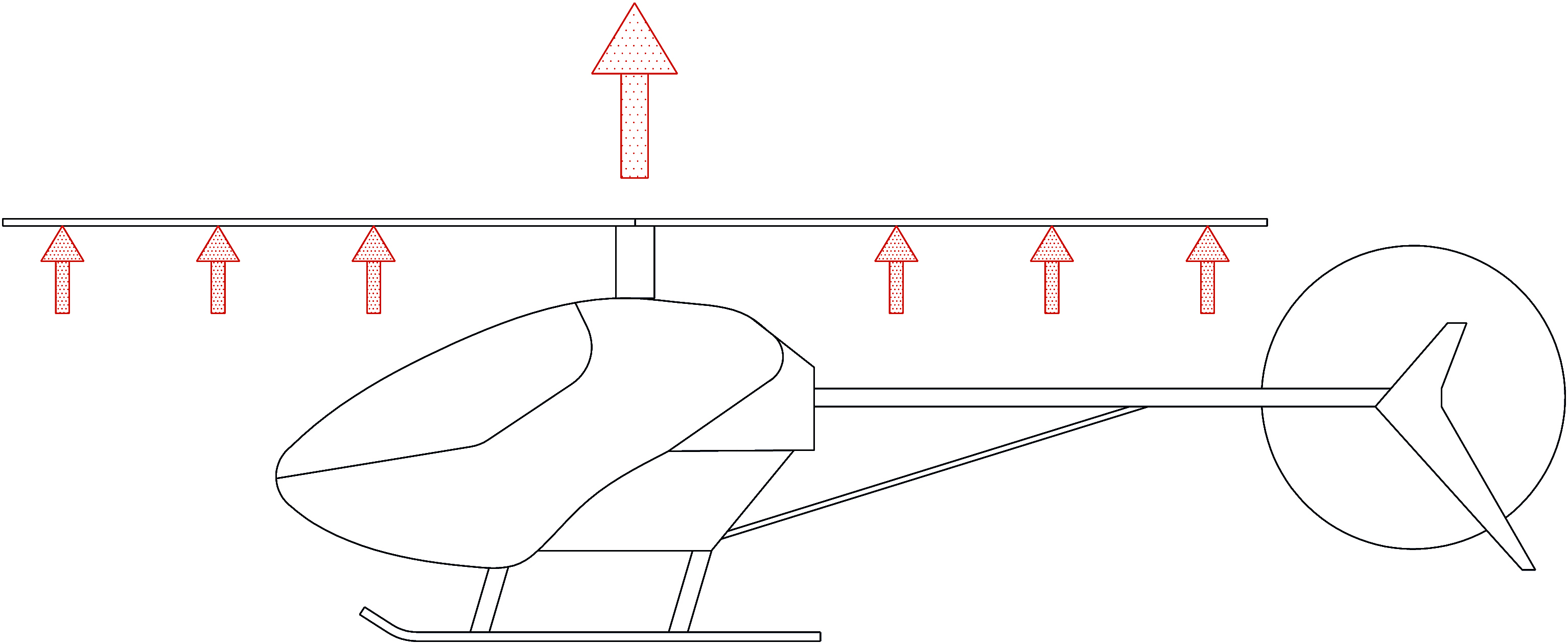 Beim Helikopter entsteht der Auftrieb prinzipiell auf die gleiche Weise. Hier ist der sich drehende Rotor die Tragfläche. Da sich beim Helikopter die “Tragfläche“ dreht, kann er auf der Stelle stehen.