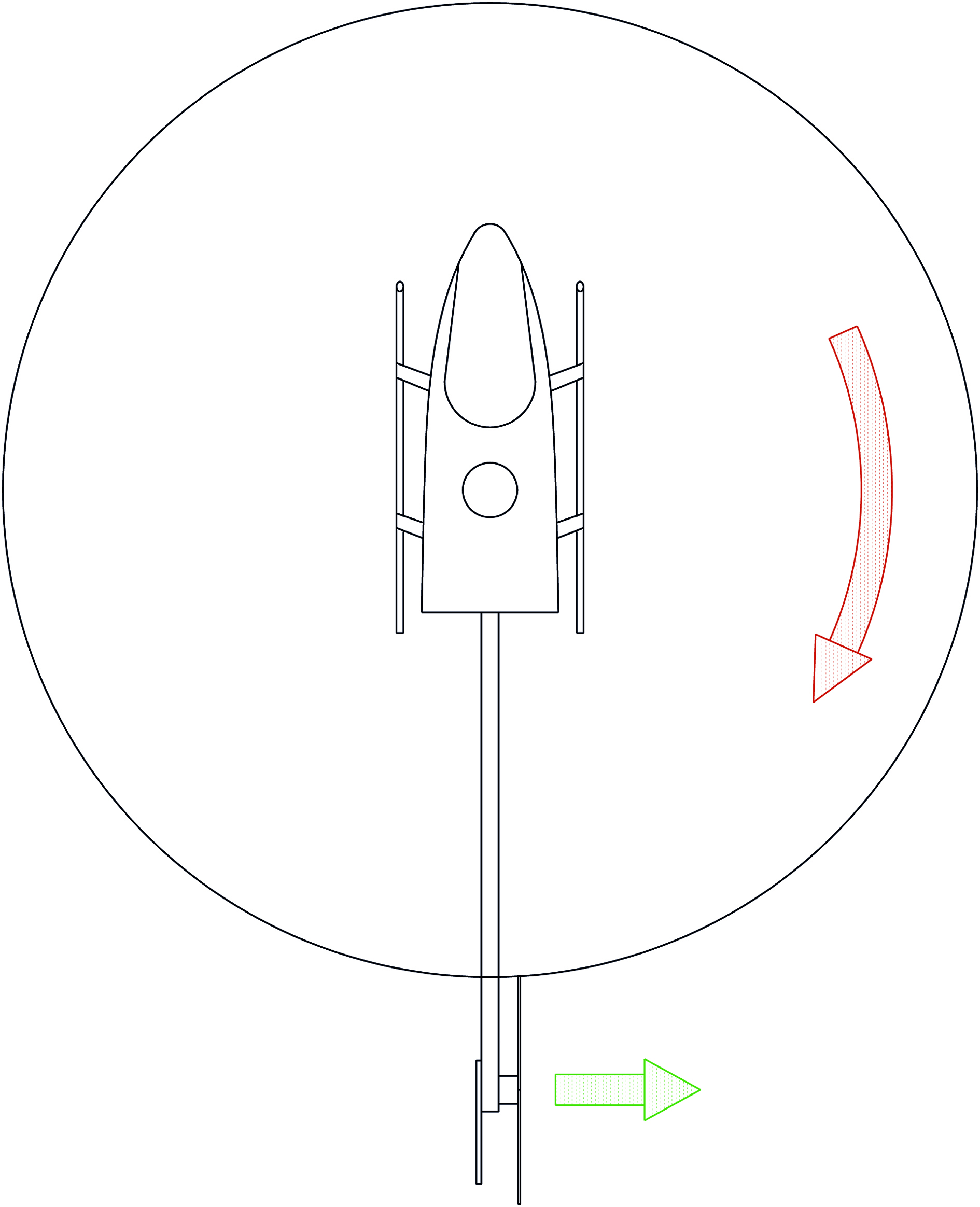 Der Nachteil: die Rotation des Rotors überträgt sich auf die Zelle. Diese dreht sich mit. Aus diesem Grund hat der Helikopter am Heck noch einen kleinen, senkrecht stehenden Rotor, mit dem dieser Drehbewegung entgegen gewirkt wird.