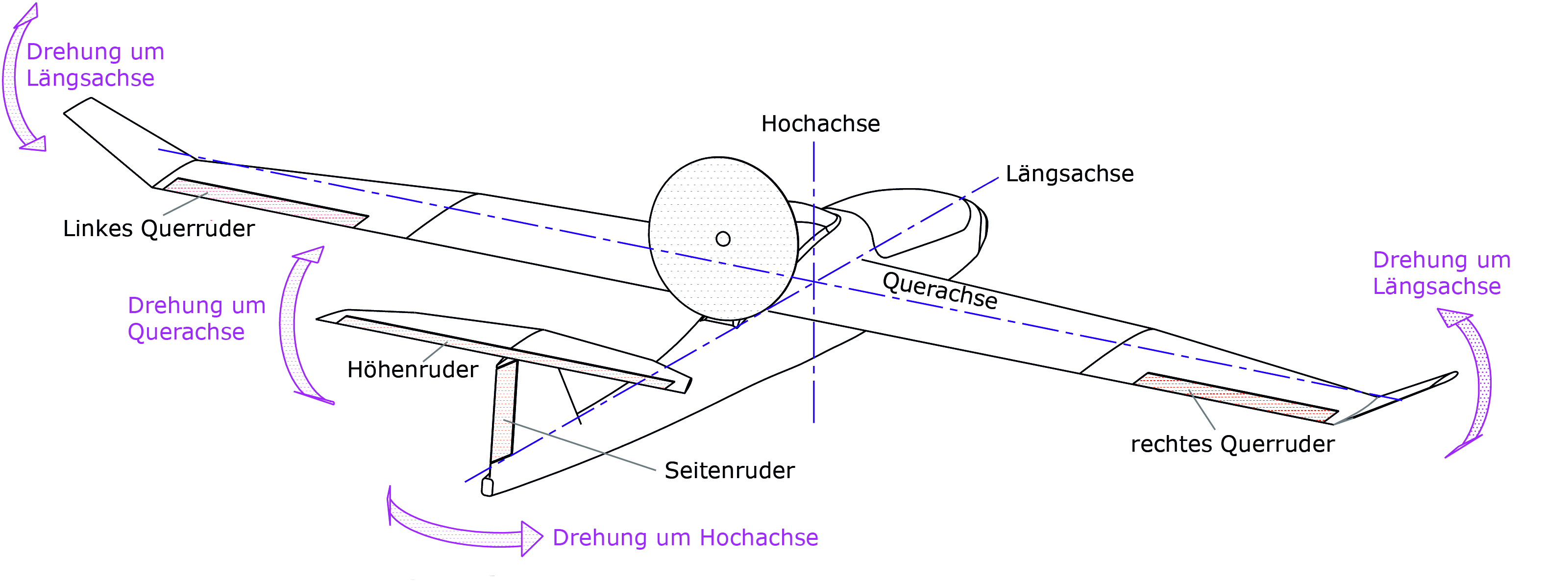 Zur Steuerung eines Flugzeuges benutzt man verschiedene Ruder (Steuerflächen). Im Modellflugzeug werden diese Steuerflächen durch Stellmotoren, den so genannten Servos, bewegt. In der Hauptsache sind drei verschiedene Ruder im Einsatz: Höhenruder, Seitenruder und Querruder.