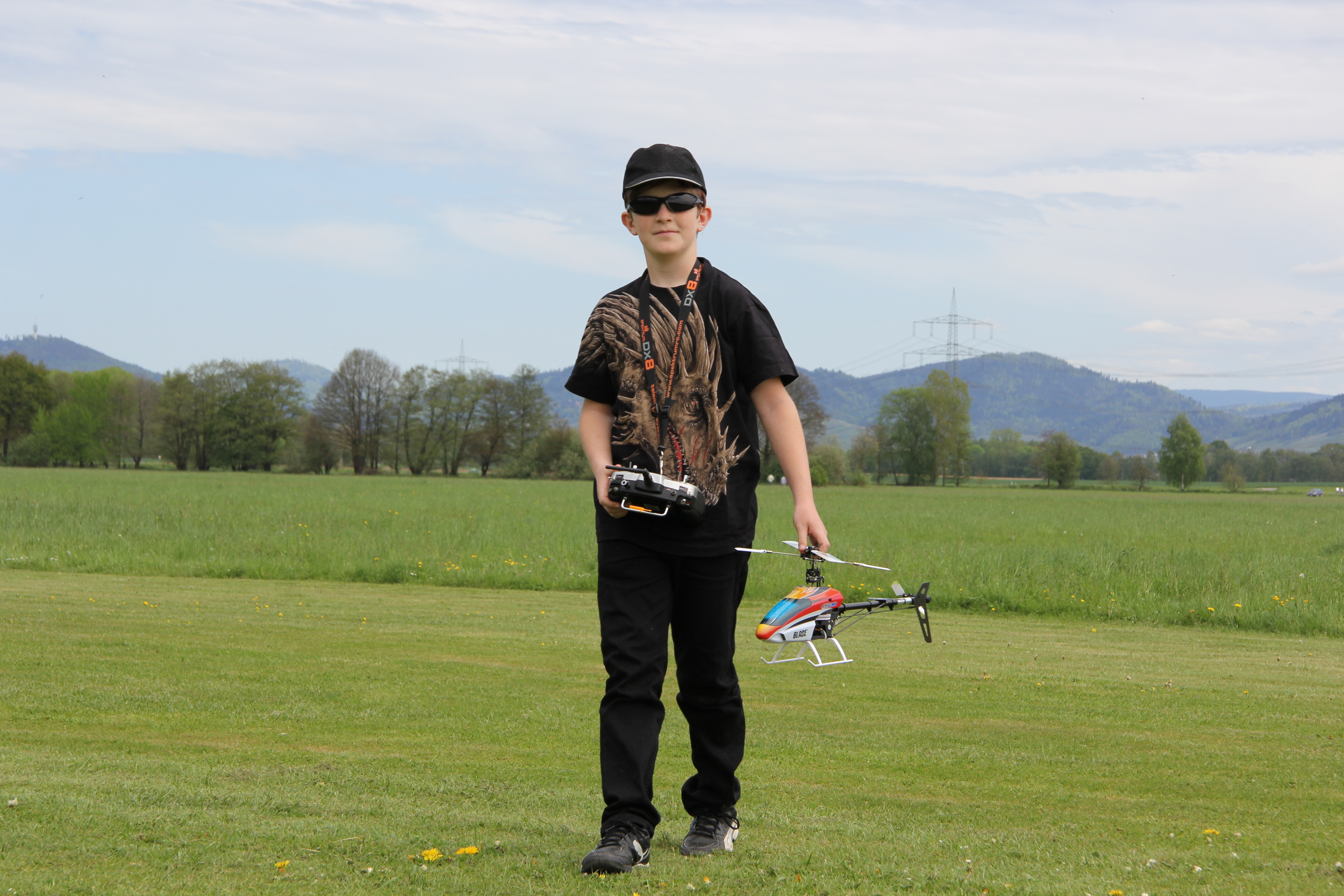 So zwischen fünf und zehn Minuten haben wir für einen Flug. Wenn wir Glück haben, können wir am Kapazitätsende des Akkus trotz Gashebel am Anschlag nicht mehr Steigen, aber vermutlich wird unser Heli rasch zu Boden sinken und sich nicht mehr erheben.