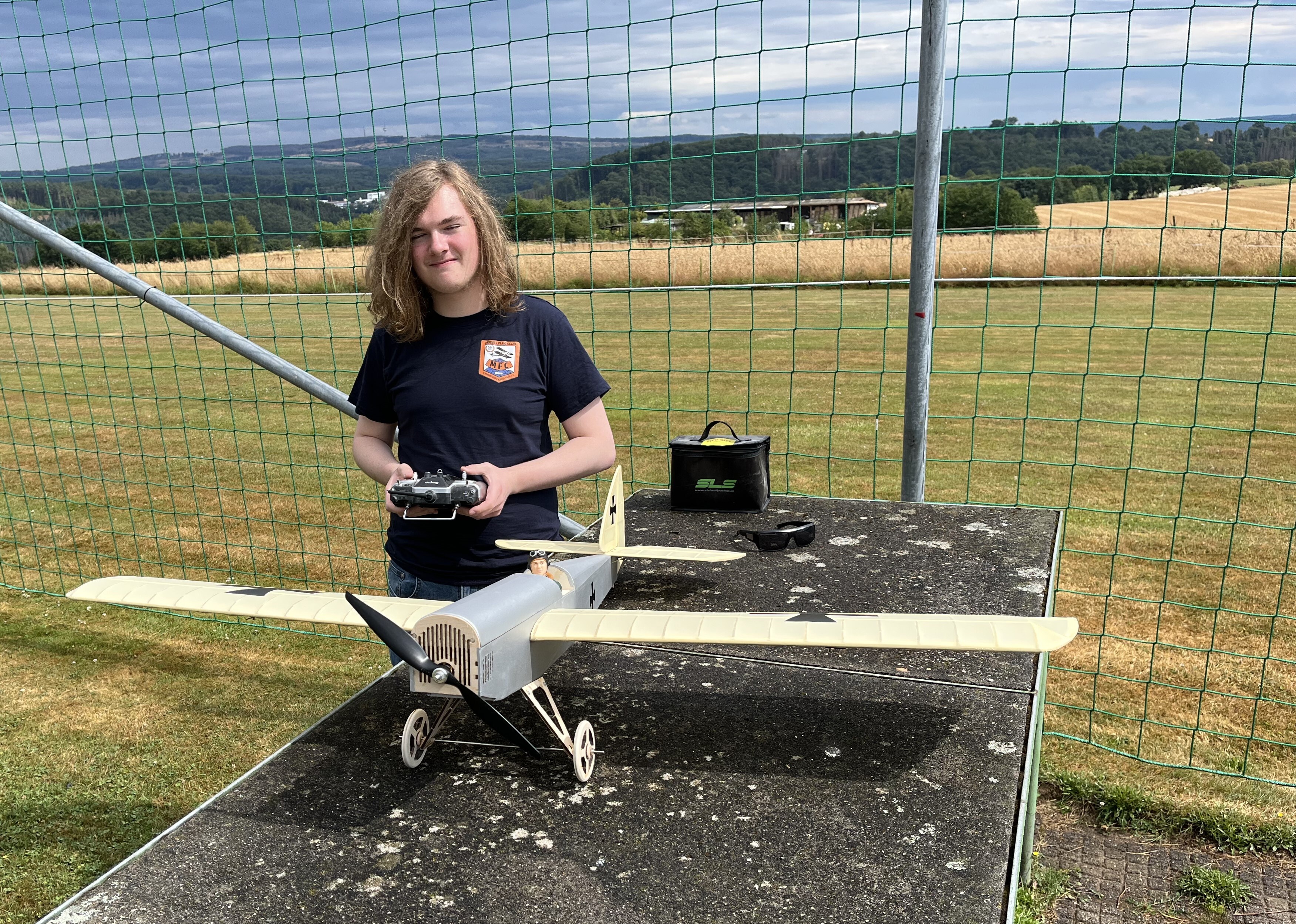 Als Justin für diesen Bericht gefragt wurde, was seine Motivation war, sich mit Modellbau und Modellflug zu beschäftigen, erzählte er, dass die grundlegende Idee von seiner Mutter kam. Zudem erinnerte sich seine Oma noch an einen Modellbaukasten mit einem Calmato, der bereits einige Zeit in ihrem Keller stand. Darin befanden sich auch eine Funkfernsteuerung und ein Verbrennungsmotor. In unserer Jugendgruppe wurde der Flieger auf Elektrobetrieb umgebaut.