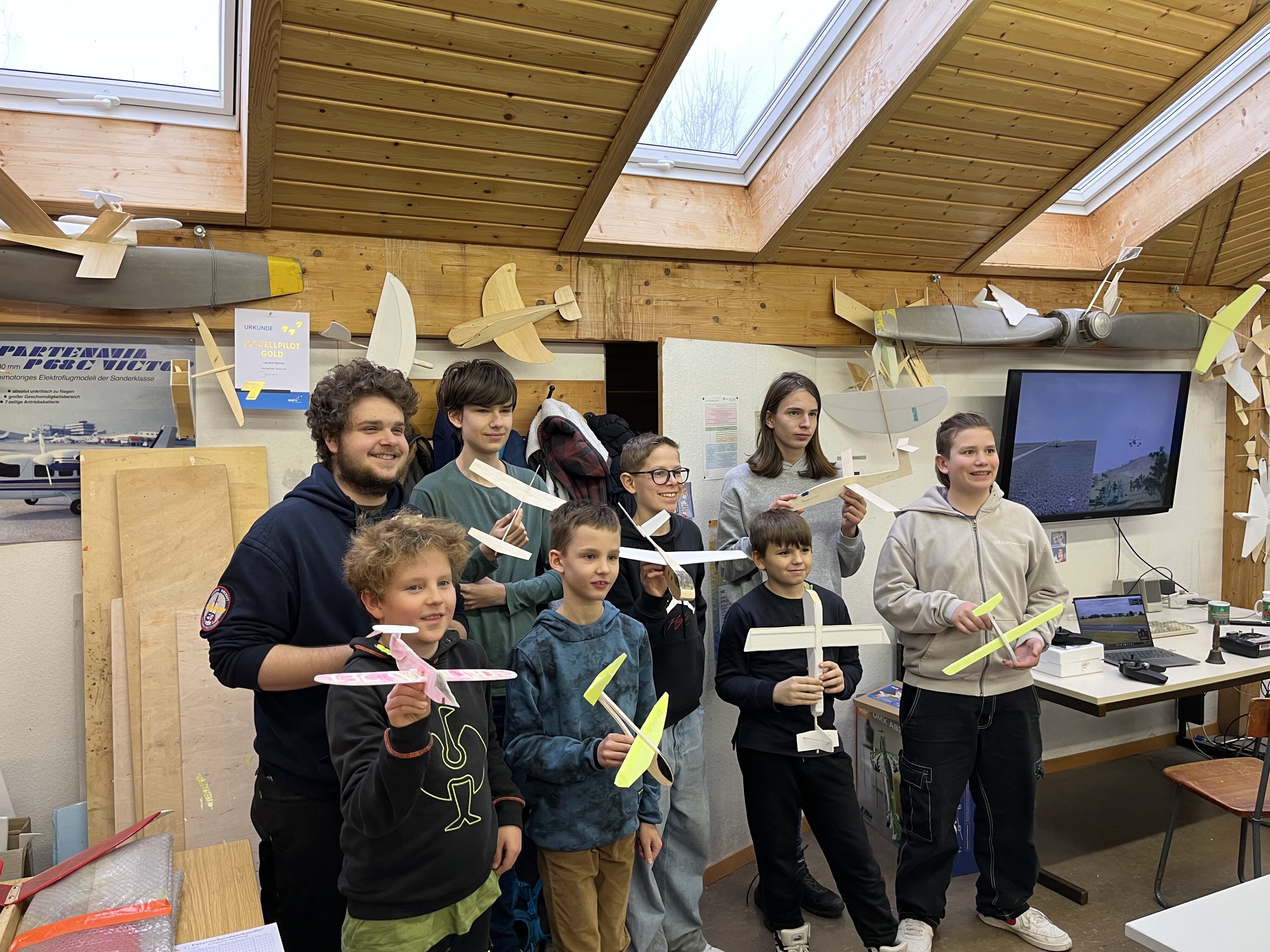 Unterstützt von einer beachtlichen Anzahl an Vereinsmitgliedern und bei weihnachtlicher Musik entstanden in der Vereinswerkstatt acht einzigartige Modelle. Während einige der Jugendlichen auf klassische Segelflugzeuge setzten, wagten andere mutige Experimente mit unkonventionellen Designs. Der Spaß und die Begeisterung waren den jungen Bastlern ins Gesicht geschrieben.