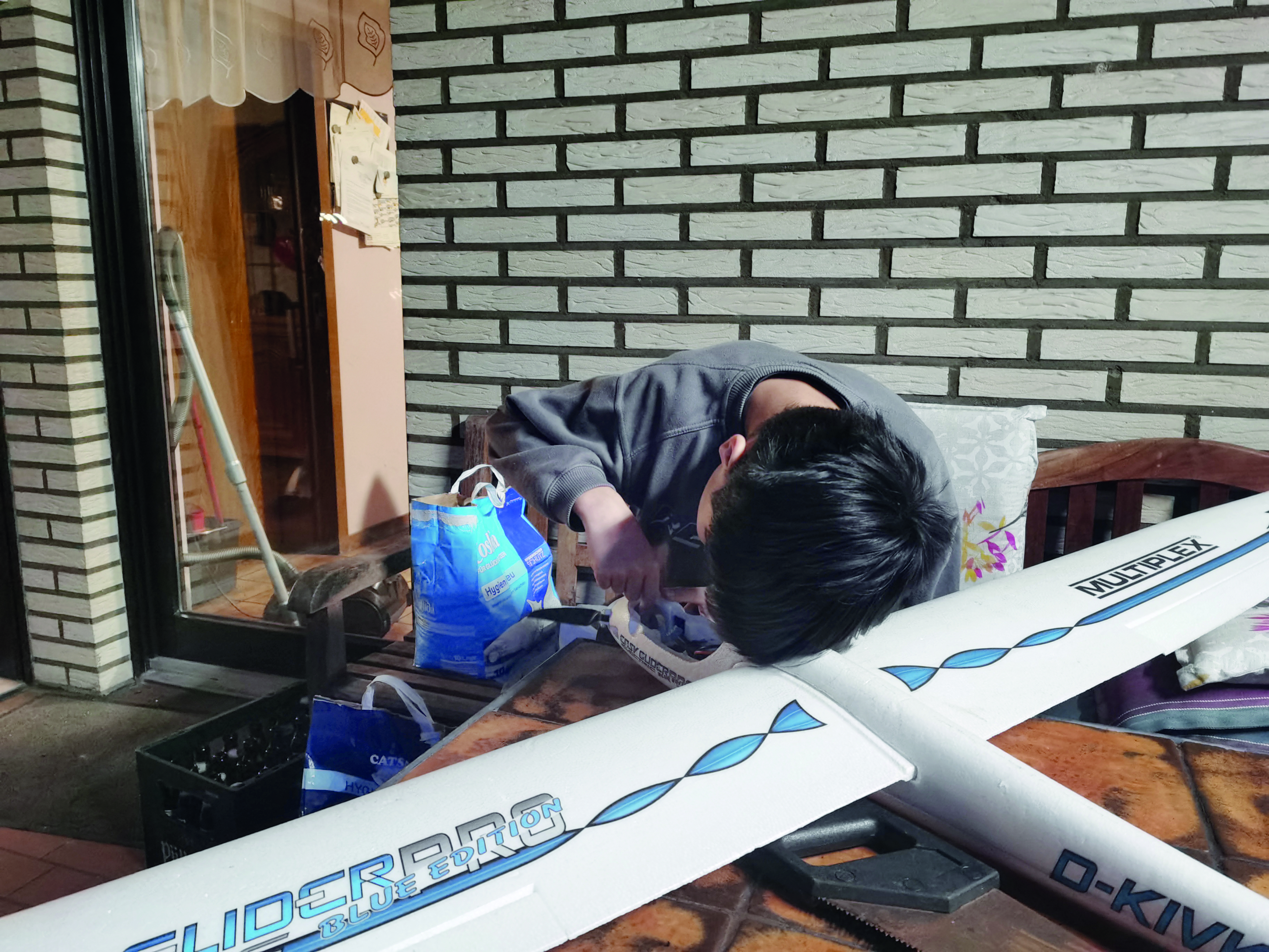 Der Griff in die Phrasenkiste passt auch hier durchaus: Wo ein Wille, da ein Weg. Natürlich muss man immer noch sehr genau hinschauen, welcher Jugendliche welche Möglichkeiten hat. Gerade bei unseren beiden Neueinsteigern John und Willem bin ich persönlich wirklich begeistert, denn beide waren im ersten Anfängerkurs, bei dem wir nicht in Präsenz basteln konnten. Natürlich waren die Eltern eingespannt und es klingelte immer wieder mal das „Modellbautelefon“. Zudem wurden Skizzen und Fotos hin und her geschickt, aber am Ende sind die Modelle nun flugfertig. Sogar das – besonders für Einsteiger nicht immer ganz triviale – Programmieren der Sender klappt mit ein wenig Erklärung und Telefonsupport sehr viel besser als erwartet.