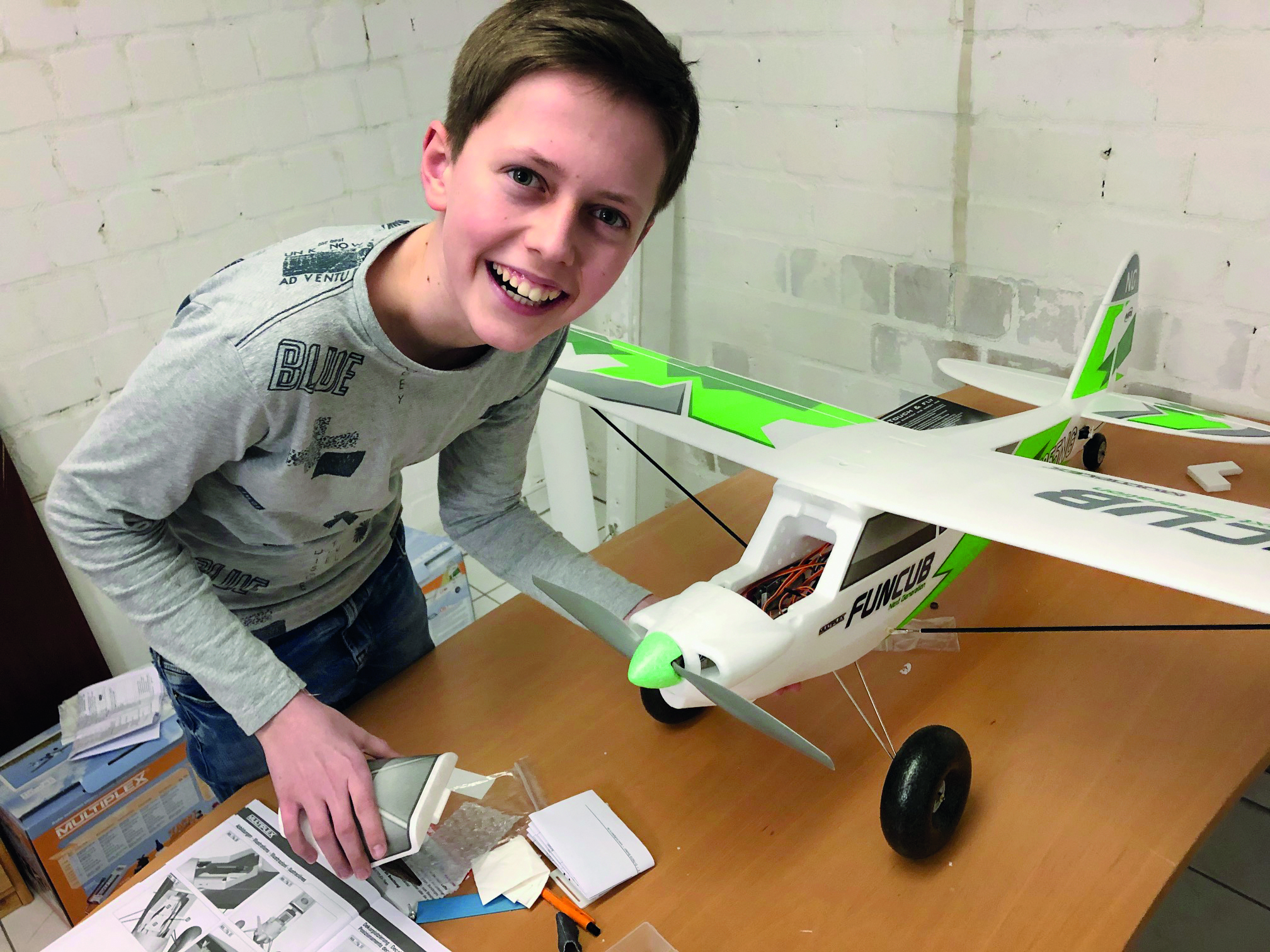 Mein Name ist Tim Albers und ich bin 11 Jahre alt. Im Winter 2019 habe ich mit dem Modellbau angefangen. Der Jugendwart Stefan Fehmer erklärte uns die Regeln im Verein VMC Grenzflieger. Gebaut haben wir zuerst eine Multiplex FunCub.