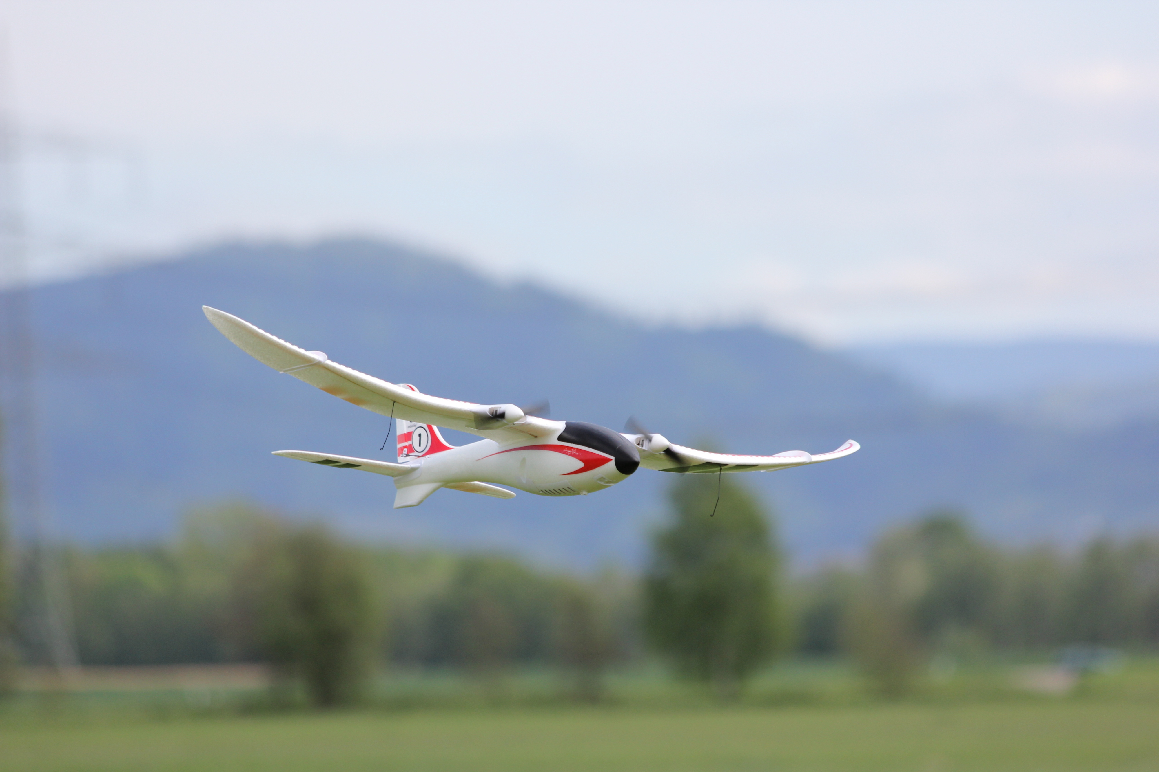 Ist unser Modell bei einer Flughöhe von etwa 30 m angelangt, so schaltet man einfach den Motor wieder ein und lässt das Modell wieder steigen – ein Vorteil des Elektroantriebs!
