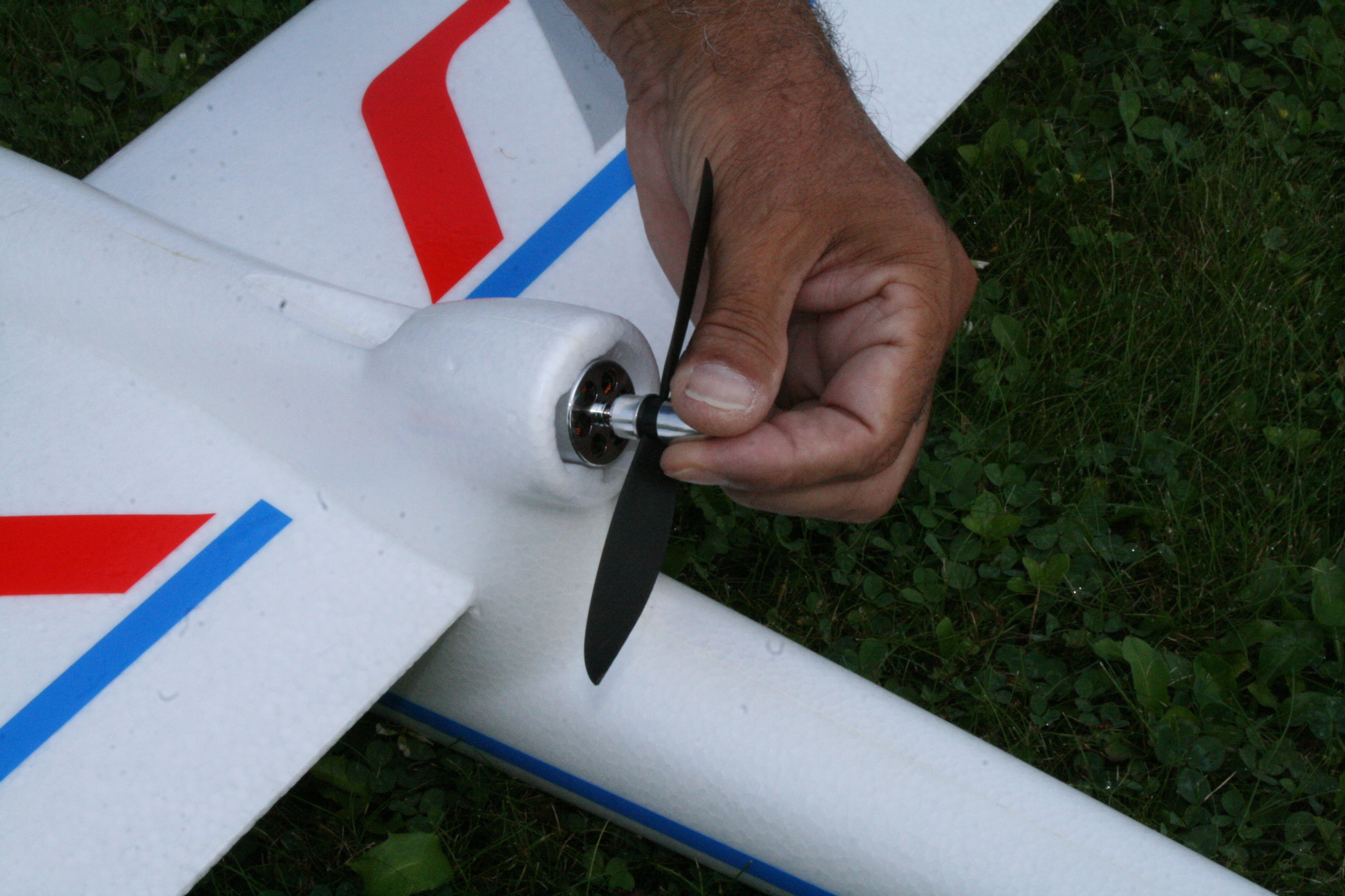 Ist die Luftschraube verschmutzt, die Blattenden (Propellerenden) eingerissen oder gar abgebrochen? Kann die Luftschraube frei drehen? Bei Klapp-Luftschrauben: Klappen die Luftschraubenblätter leicht an den Rumpf an?