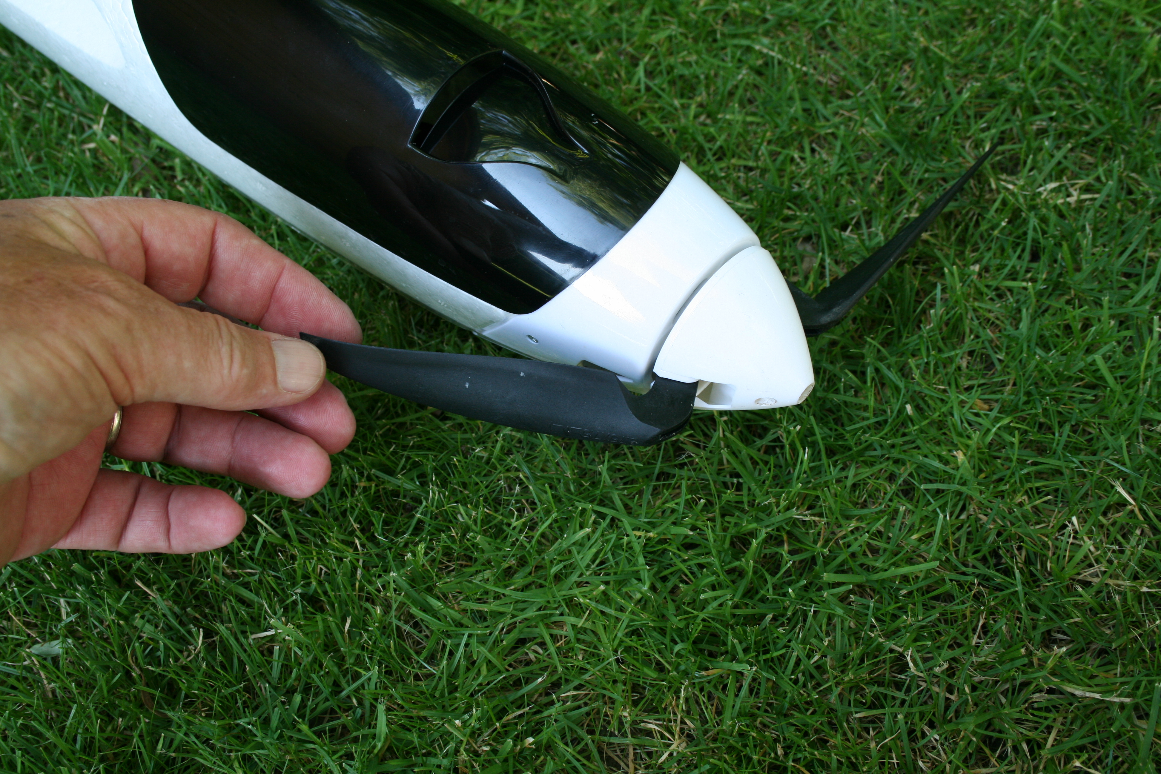Sind die Tragflächen vollständig am Rumpf angesteckt? Sind vorhandene Befestigungsschrauben fest angezogen und unversehrt? Sind die elektrischen Steckverbinder zu den Querrudern richtig zusammen gesteckt? Ist ein Teil am Modell gebrochen oder gestaucht? Besonderes Augenmerk gilt dabei den Ruderanlenkungen.
