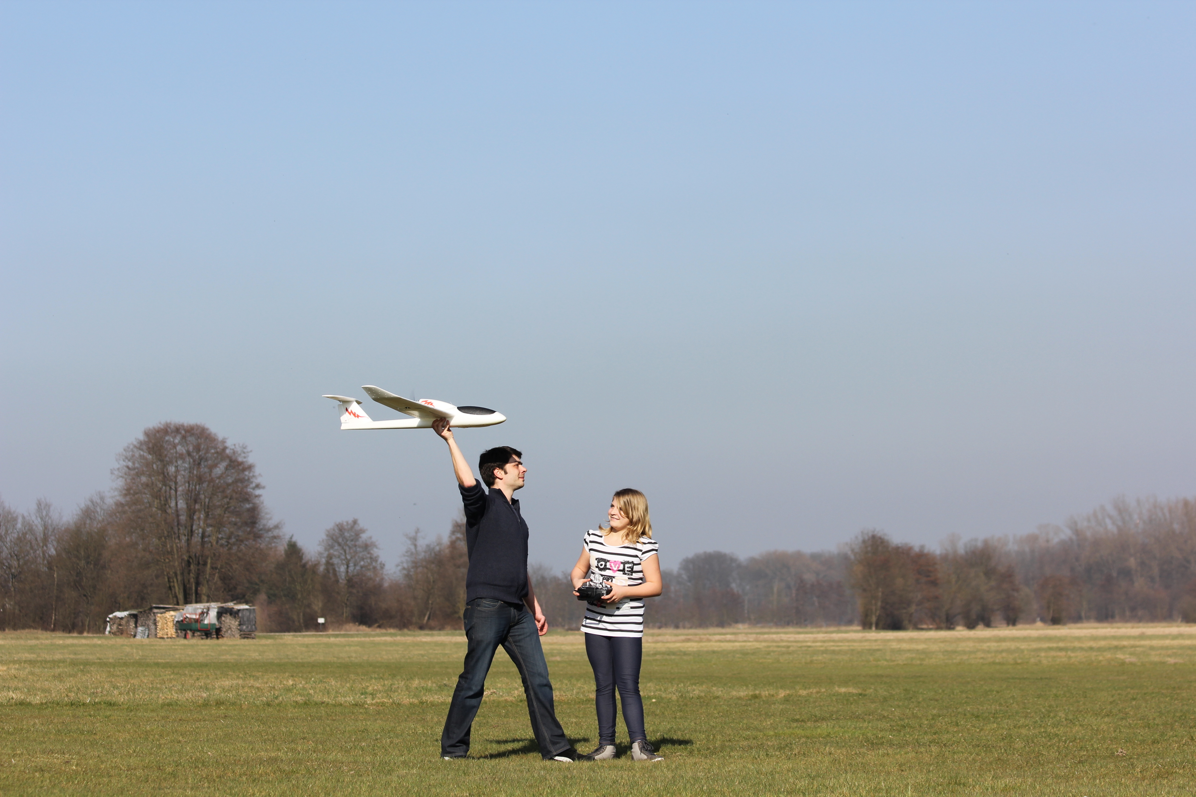 Wir haben uns erstes Modell fertig aufgebaut – toll ist es geworden! Alle Arbeiten wurden sorgfältig erledigt, der Schwerpunkt exakt eingewogen, frische Batterien in den Sender eingelegt und den Flugakku geladen. Jetzt üben wir uns noch ein bisschen in Geduld und warten einen windstillen Tag ab – die beste Voraussetzung für einen erfolgreichen Erstflug!
