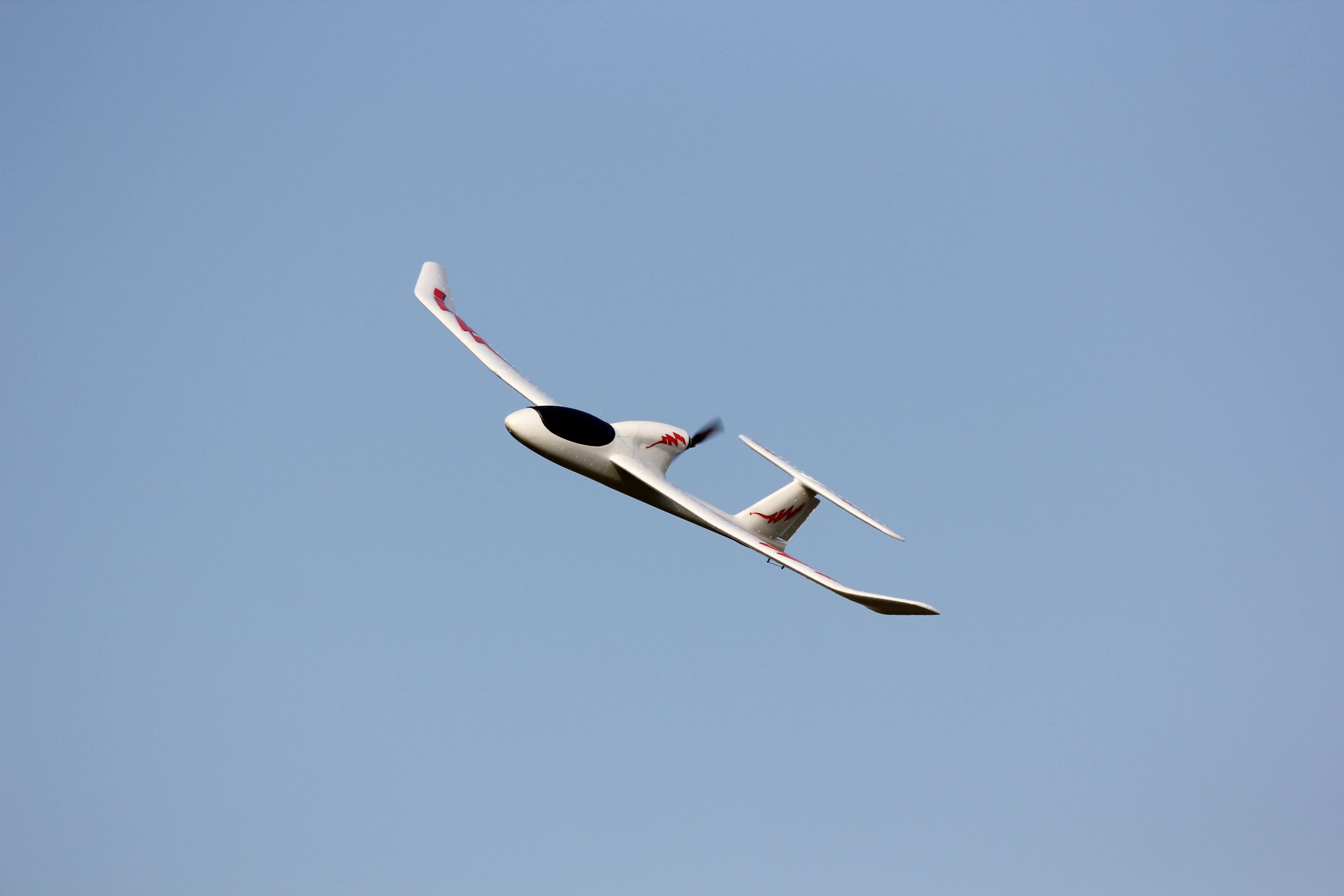 Nimmt das Modell die Nase nach unten und wird schneller, so wirken wir dem mit der Höhenrudertrimmung entgegen. Aber nicht zuviel, das Modell darf keinesfalls dadurch die Nase hochnehmen, es würde nach kurzer Flugstrecke zu langsam werden. Wohlgemerkt, wir sprechen hier von kleinen Trimmkorrekturen, wird der volle Trimmweg benötigt und das Modell fliegt dann möglicherweise immer noch „schief“, dann ist irgendetwas nicht in Ordnung und wir landen das Modell wieder.
