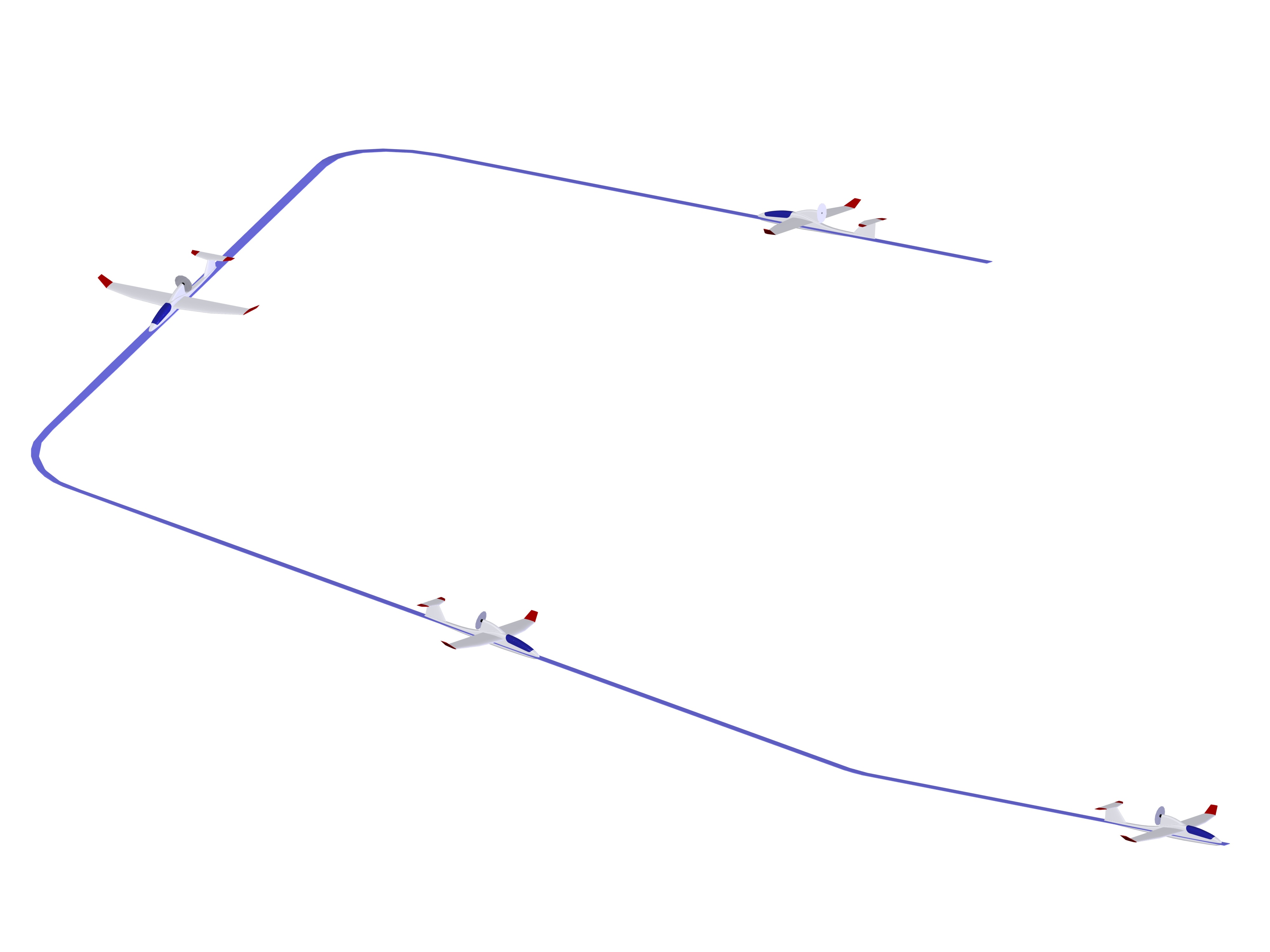 Ein Modell bewegt sich in der Luft und ist damit allen Einflüssen ausgeliefert, seien es Wind, Ablösungen oder Luftverwirbelungen. Alle beeinflussen die Flugbahn des Modells, mit dem Ergebnis, dass dieses von seinem vorbestimmten Kurs abkommt. Und dem gilt es entgegen zu wirken. Bei der ersten Übung – dem Lernen des Geradeausfliegens – wird stur geradeaus parallel zum Platz geflogen, in einer 180°-Kurve umgedreht und von der anderen Seite dies wiederholt.