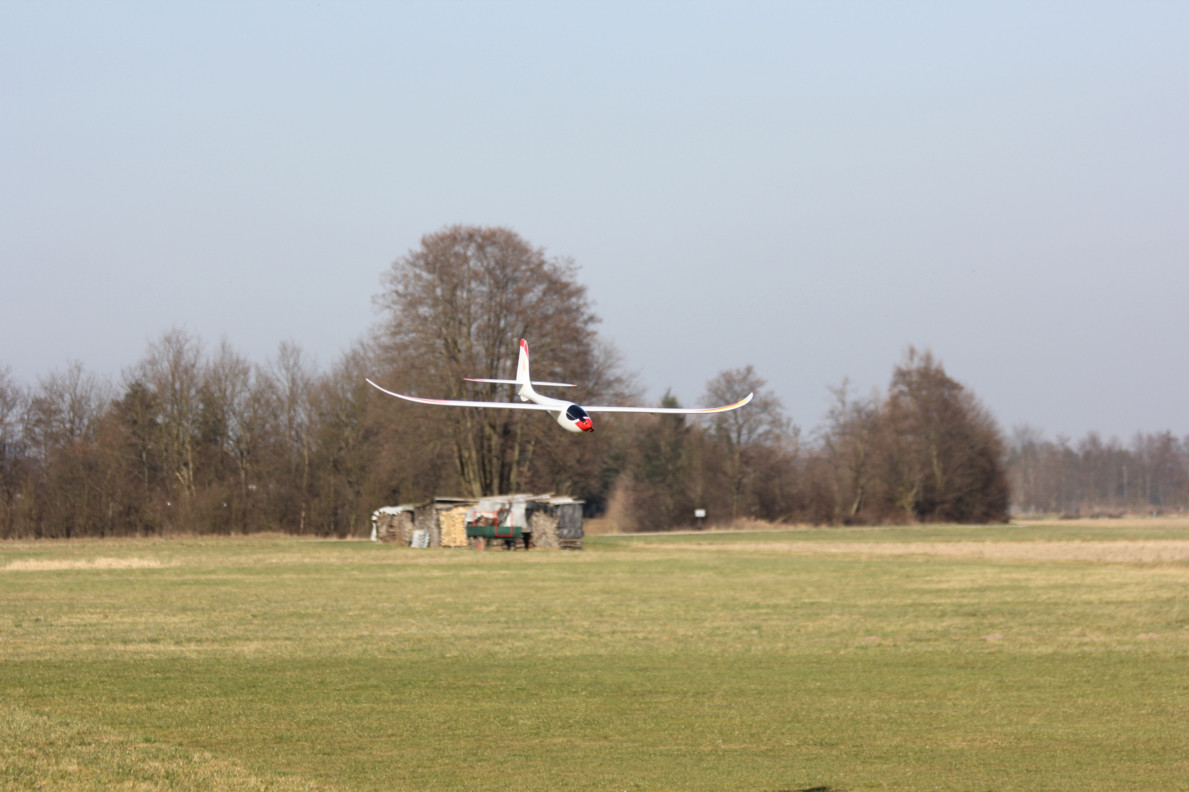 Die Landung stellt bei den ersten Flügen den schwierigsten Teil des Fluges dar. Wer die Flugrichtung halten kann und den Kurvenflug beherrscht, hat schon die halbe Miete in der Tasche.