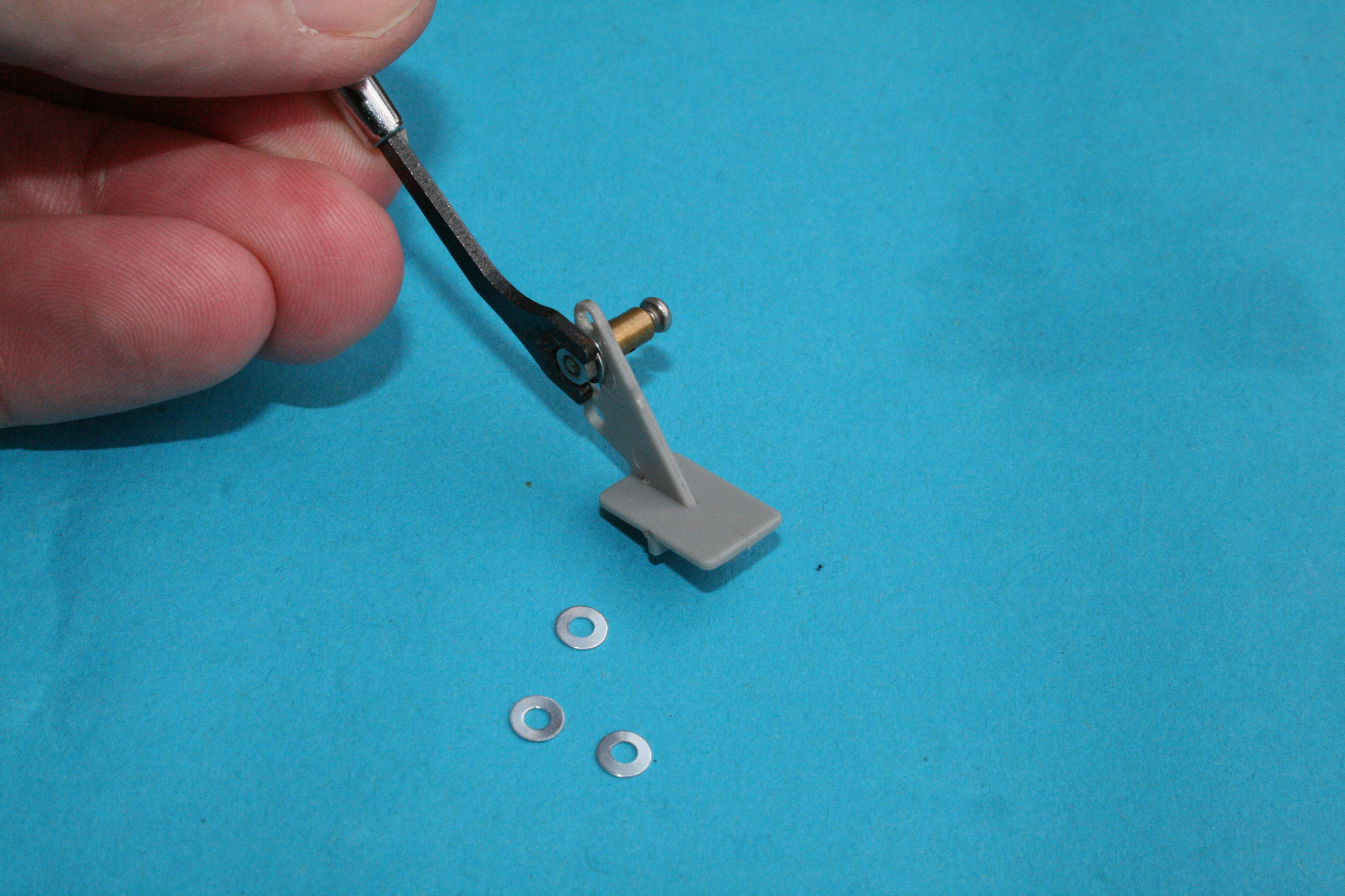 Als vorbereitende Maßnahme komplettieren wir die Ruderhörner mit den Klemmstücken. Mittels des Klemmstücks wird später das Ruderhorn bzw. die Ruderklappe mit dem Anlenkgestänge zum Servo hin verbunden.