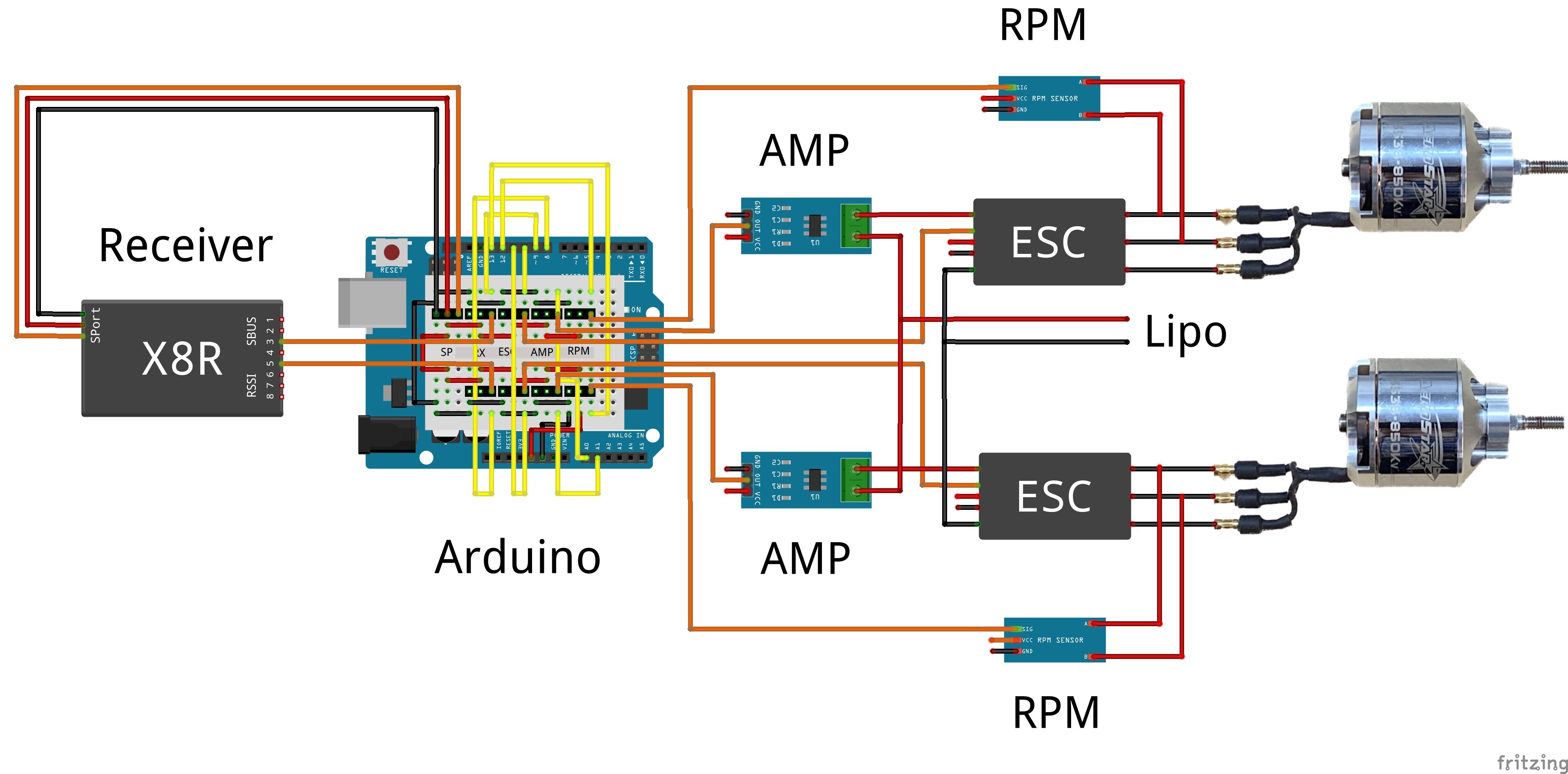 Im FMT-Extra RC-Elektronik 2025 beschreibt Knud Jacobsen sein Konzept zur Überwachung von zweimotorigen Antrieben. Den Arduino-Code und das Anschluss-Schema gibt es im VTH-Shop als kostenfreien Download.