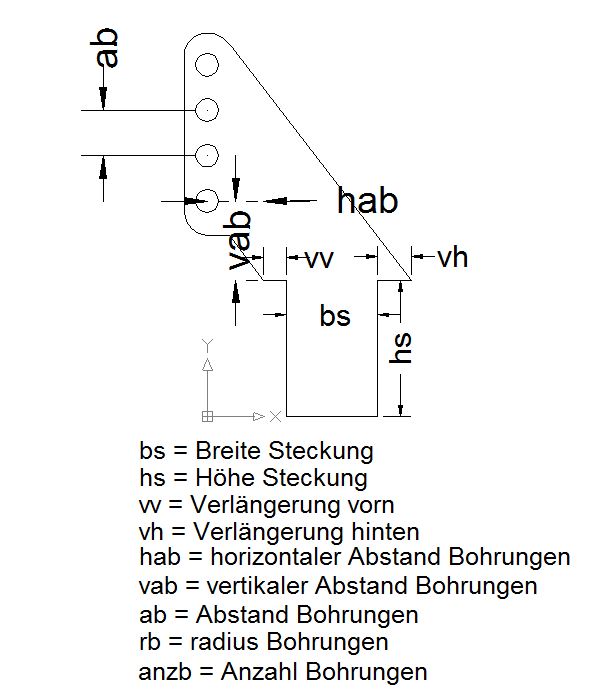 Laden Sie die nachfolgende Textdatei herunter und ersetzen die Maße durch die Maße des gewünschten Ruderhornes. Sie können die Datei auch per Mail an fmt@vth.de senden und erhalten dann eine DXF-Datei des gewünschten Ruderhorns.