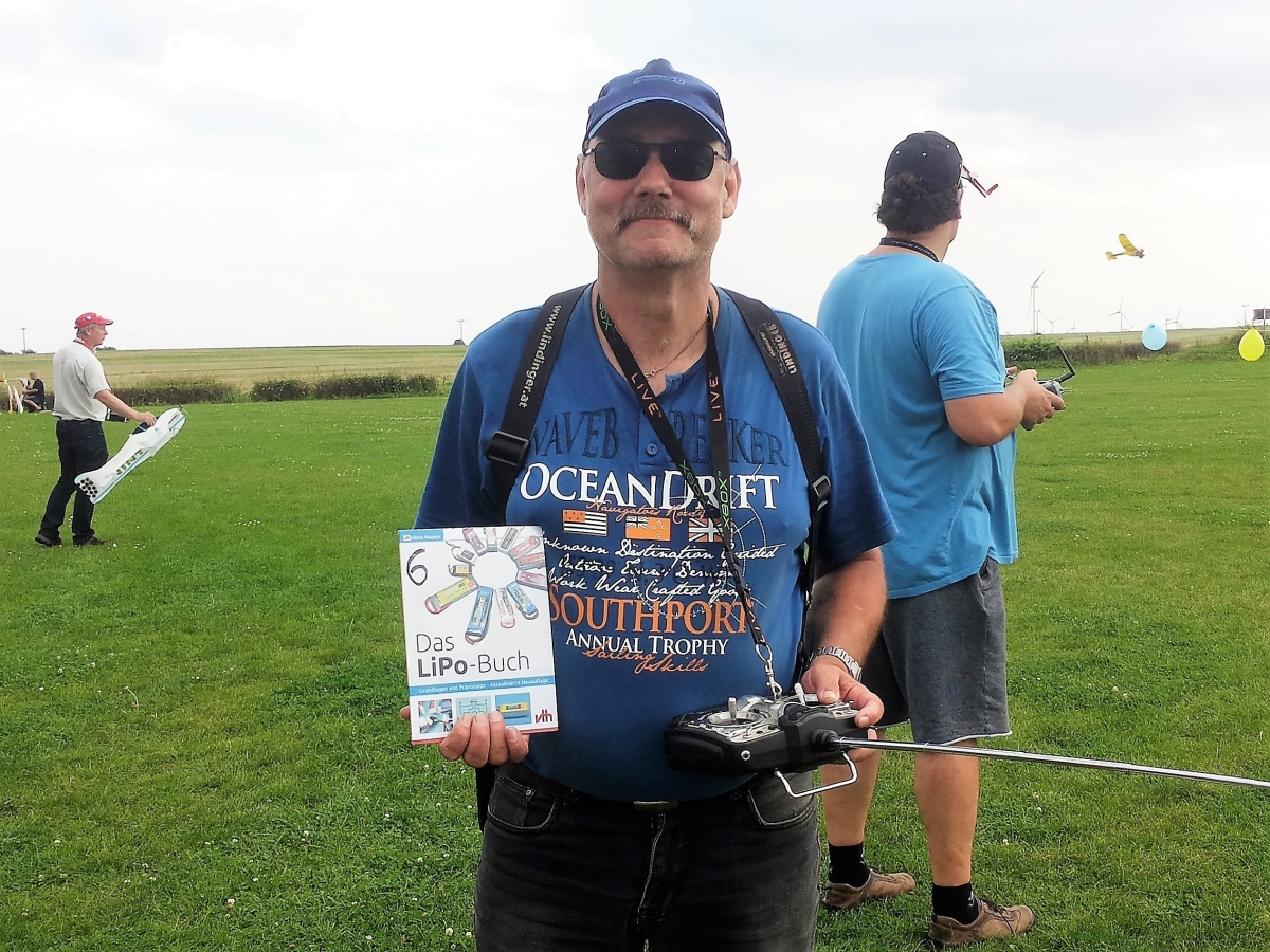 Die in den Ballons eingesteckten Lospreise standen stellvertretend für Präsente, welche vom DMFV sowie dem Verlag der Fachzeitschrift „FMT“ gesponsert wurden. Ob ein Basecap oder Schlüsselband des Dachverbandes gewonnen wurde oder ein interessantes Fachbuch aus der beliebten VTH-Serie, das Interesse wollte nicht abreißen. Großer Jubel und Anerkennung machte sich breit, als Gastflieger Olaf aus Crawinkel den Ballon mit dem Hauptpreis abriss und sich somit einen Pichler Modellbausatz einer Me-163 sicherte (Slowflyerversion).