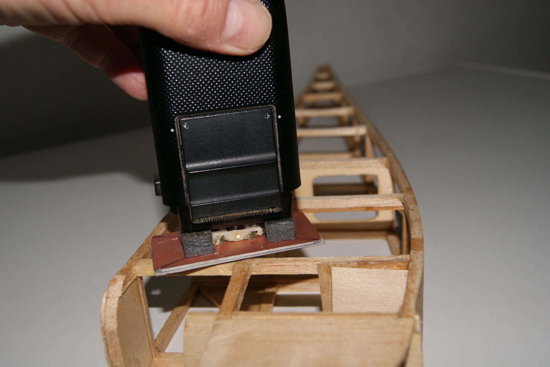 Bei mir hatten sich acht Apparate angesammelt, inklusive der unverwüstlichen 220 Volt Rasierer von Opa. Im Modellbauhobby setze ich seit langem für gröbere Schleifarbeiten die üblichen Bauschleifgeräte ein. Für feine Arbeiten sind diese einfach zu groß und grobmotorisch - im Nu ist Balsa durchgeschliffen und man kann den Bau von neuem beginnen. So entstand die Idee, aus den überzähligen Rasierern etwas Passendes zu zaubern.