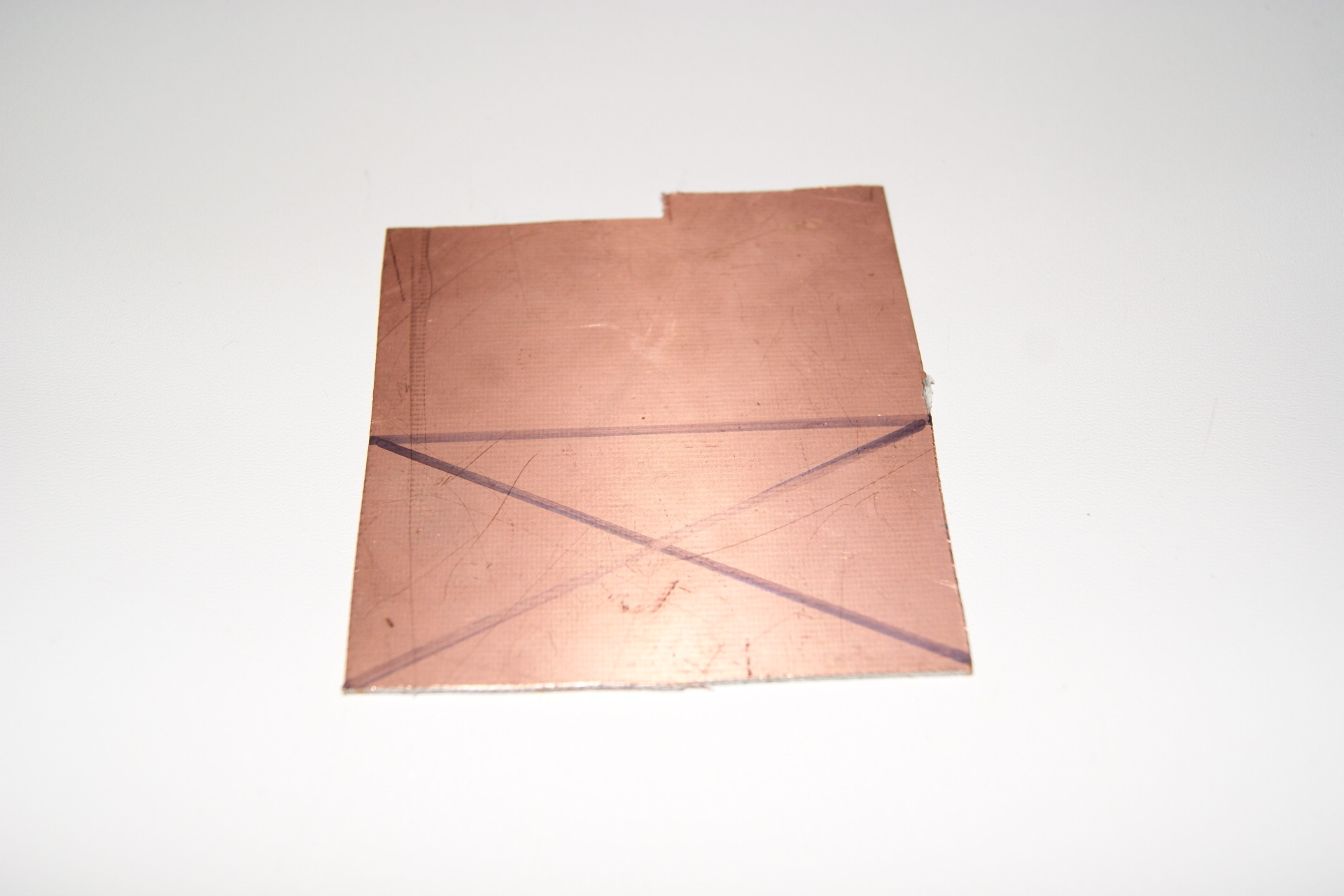 Nun fertigen wir aus Leiterplattenmaterial eine ca. 40x80 mm große Schleifpapierplatte. Dafür kann alternativ auch dünnes Sperrholz verwendet werden. Wichtig ist es, die Kanten zu glätten und die Ecken abzurunden, denn wir wollen ja keine Schrammen in unsere wertvollen Modelle bekommen.