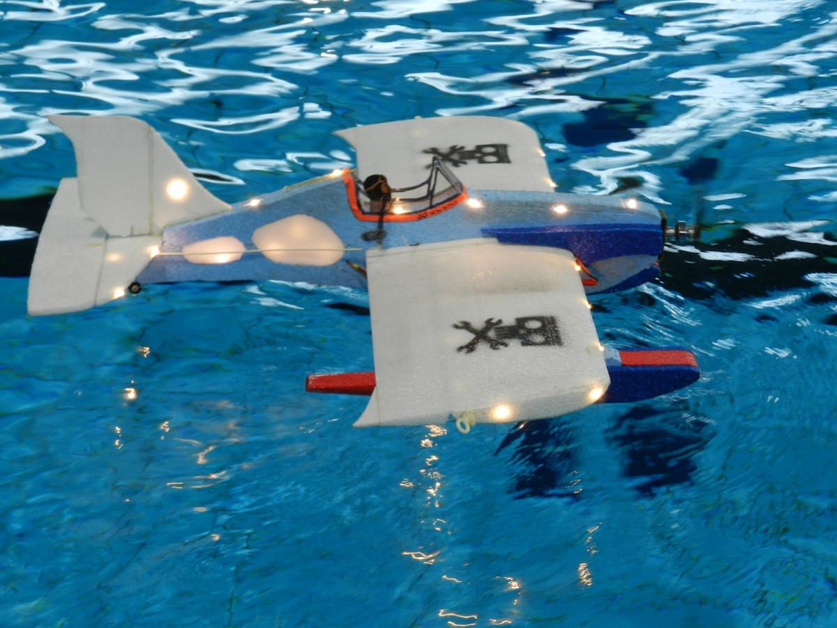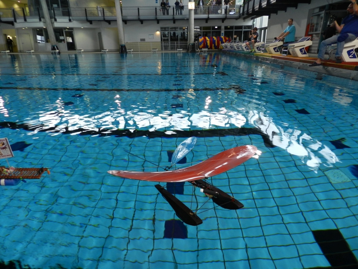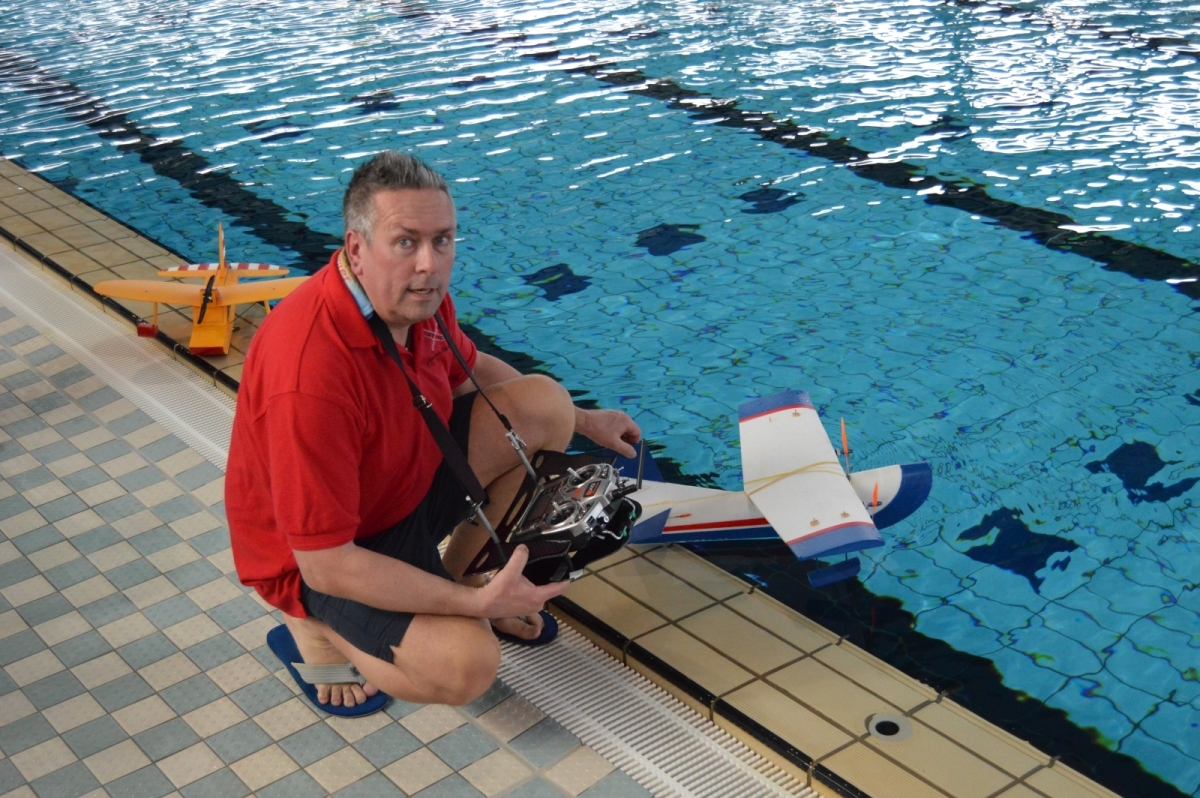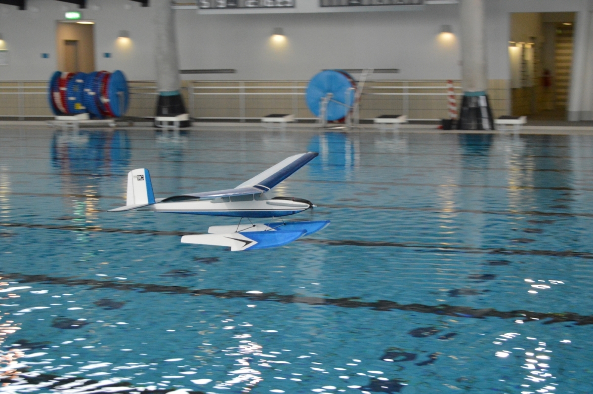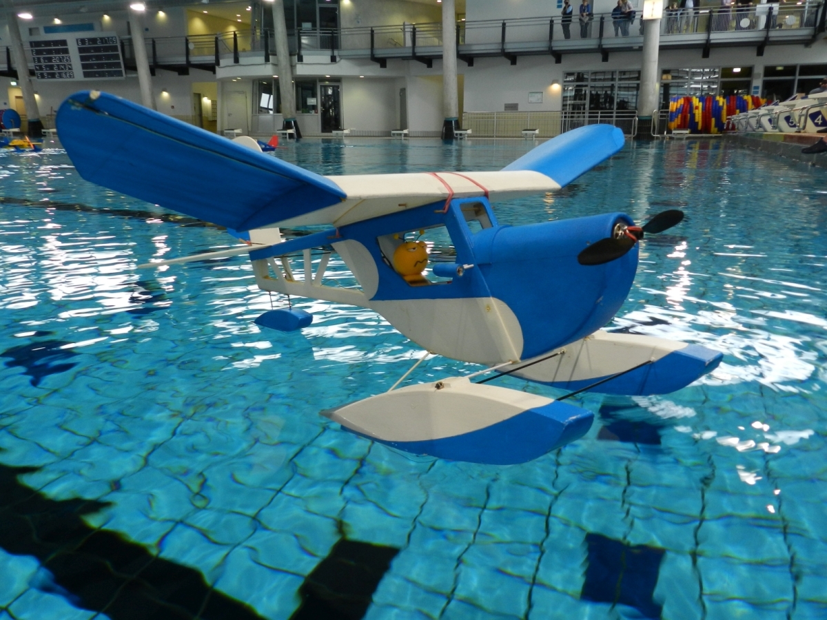 Am 25. Februar war es dann soweit, der Verein hatte zum 1. WIW (Wuppertaler-Indoor-Wasserfliegen) eingeladen. Das Schwimmbecken mit 50×25 m bietet reichlich Platz und Flugmöglichkeit. Über 40 Piloten waren nahezu aus dem gesamten Bundesgebiet angereist, drei sogar aus Belgien. Ein Großteil der rund 100 mitgebrachten Modelle wurde extra für diese Veranstaltung gebaut oder für den Wasserflug mit Schwimmern ausgerüstet. Sehr beliebt war hier zum Beispiel der Magnum Reloaded. Und rund 15 mal war das Bauplanmodell Jupiter Duck vertreten, ein einfach und leicht aufgebautes Flugboot von Thomas Buchwald mit hervorragenden Eigenschaften auf dem Wasser und in der Luft. Micheal Rützel und Stefan Hesse begeisterten mit ihren Cabbys, einem FMT-Downloadplanmodell.