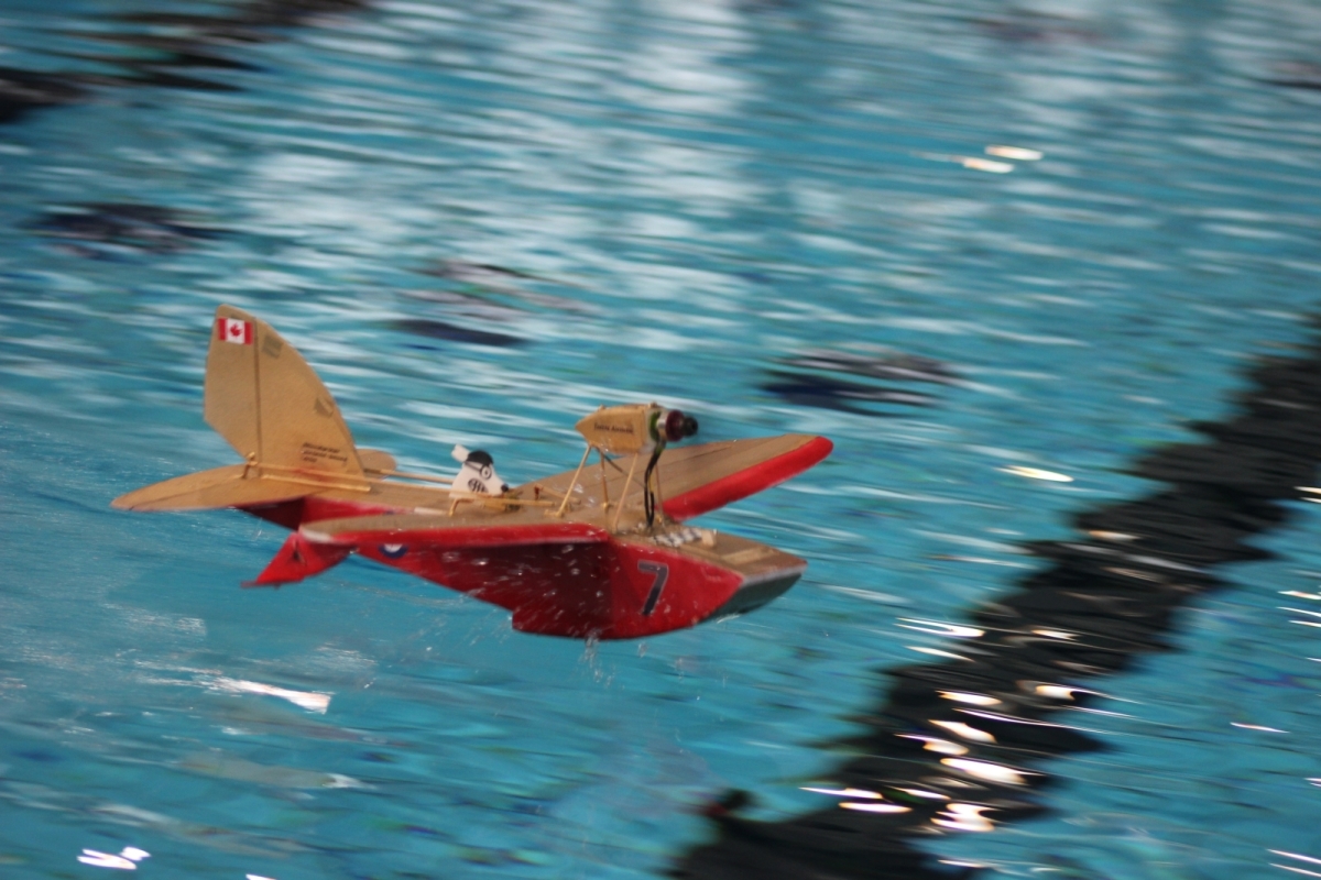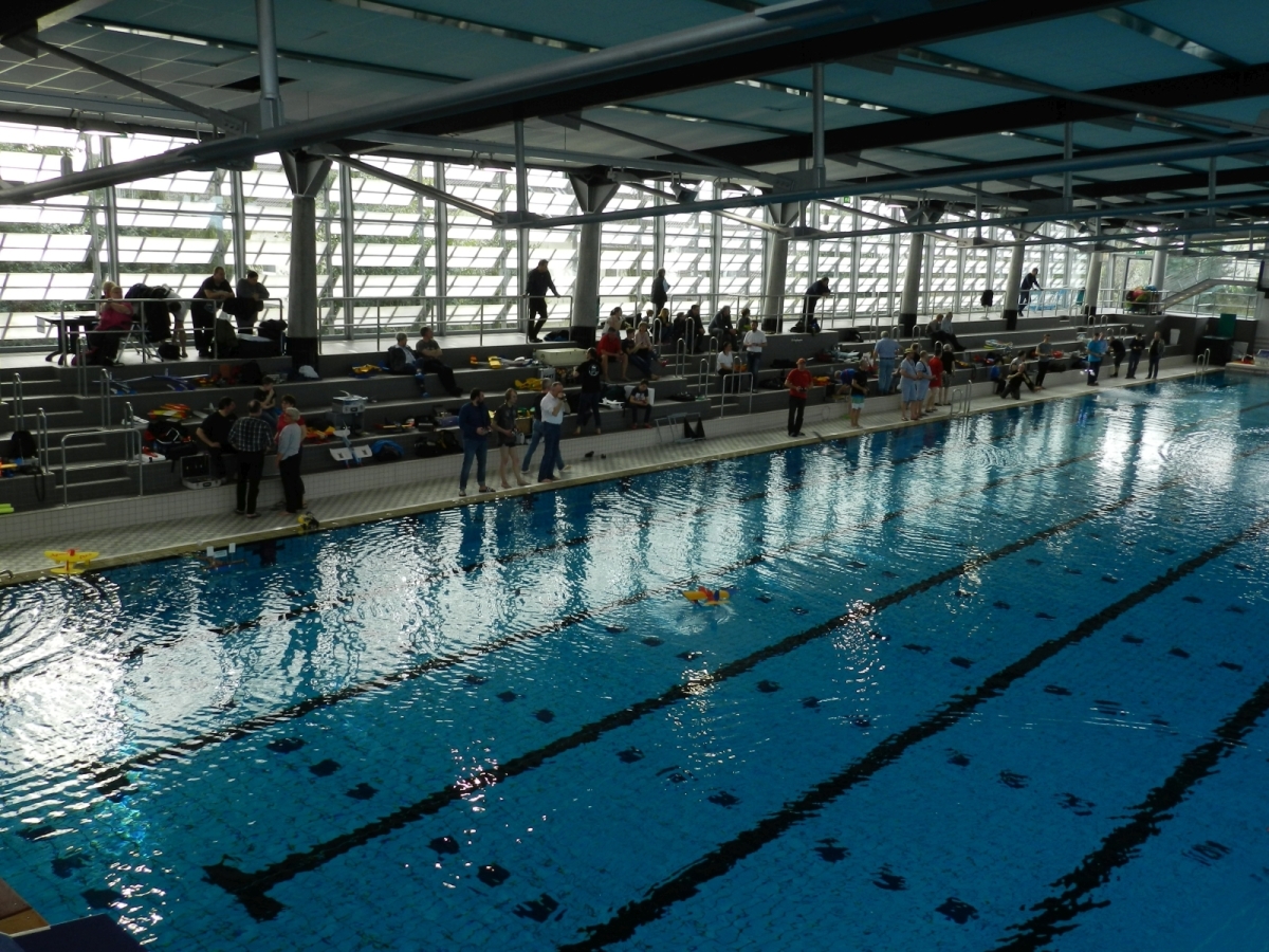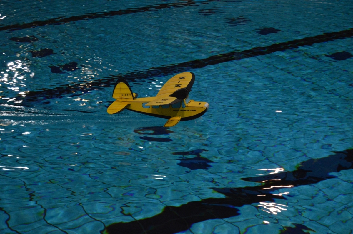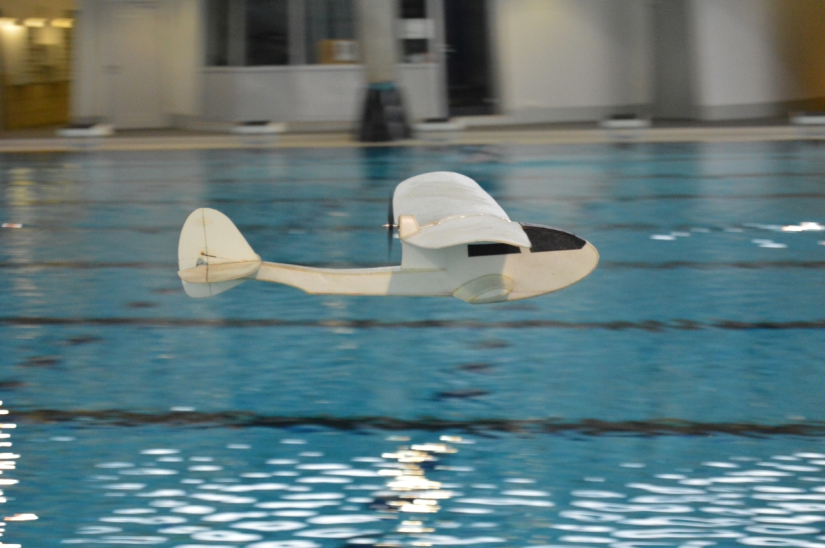 Am 25. Februar war es dann soweit, der Verein hatte zum 1. WIW (Wuppertaler-Indoor-Wasserfliegen) eingeladen. Das Schwimmbecken mit 50×25 m bietet reichlich Platz und Flugmöglichkeit. Über 40 Piloten waren nahezu aus dem gesamten Bundesgebiet angereist, drei sogar aus Belgien. Ein Großteil der rund 100 mitgebrachten Modelle wurde extra für diese Veranstaltung gebaut oder für den Wasserflug mit Schwimmern ausgerüstet. Sehr beliebt war hier zum Beispiel der Magnum Reloaded. Und rund 15 mal war das Bauplanmodell Jupiter Duck vertreten, ein einfach und leicht aufgebautes Flugboot von Thomas Buchwald mit hervorragenden Eigenschaften auf dem Wasser und in der Luft. Micheal Rützel und Stefan Hesse begeisterten mit ihren Cabbys, einem FMT-Downloadplanmodell.