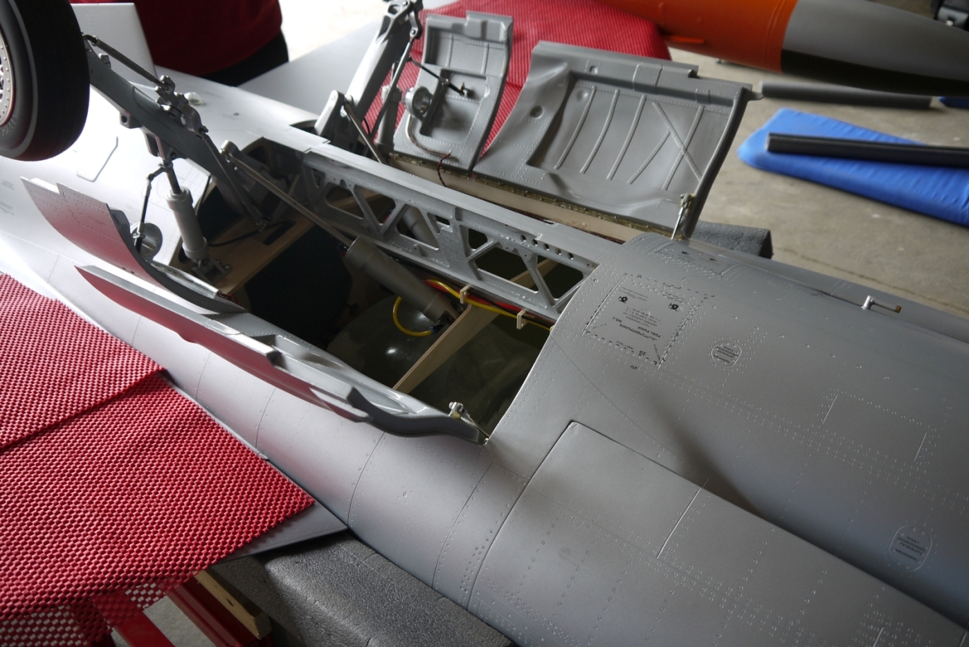 Das Fahrwerk der Maschine ist sehr an das Original angelehnt, der pneumatische Ein- und Ausfahrvorgang begeistert den Betrachter. Den Prüfer wiederum freut es, dass ein Reserveluftkreis eingebaut ist, der bei eventuellem Versagen des Hauptkreises das Fahrwerk sicher ausfährt. Lackiert ist das Modell nach dem Vorbild einer Einsatzmaschine der Bundesluftwaffe mit Liebe zum Detail und den vielen Scale-Wartungshinweisen und -Beschriftungen, die es zu etwas Speziellem machen.