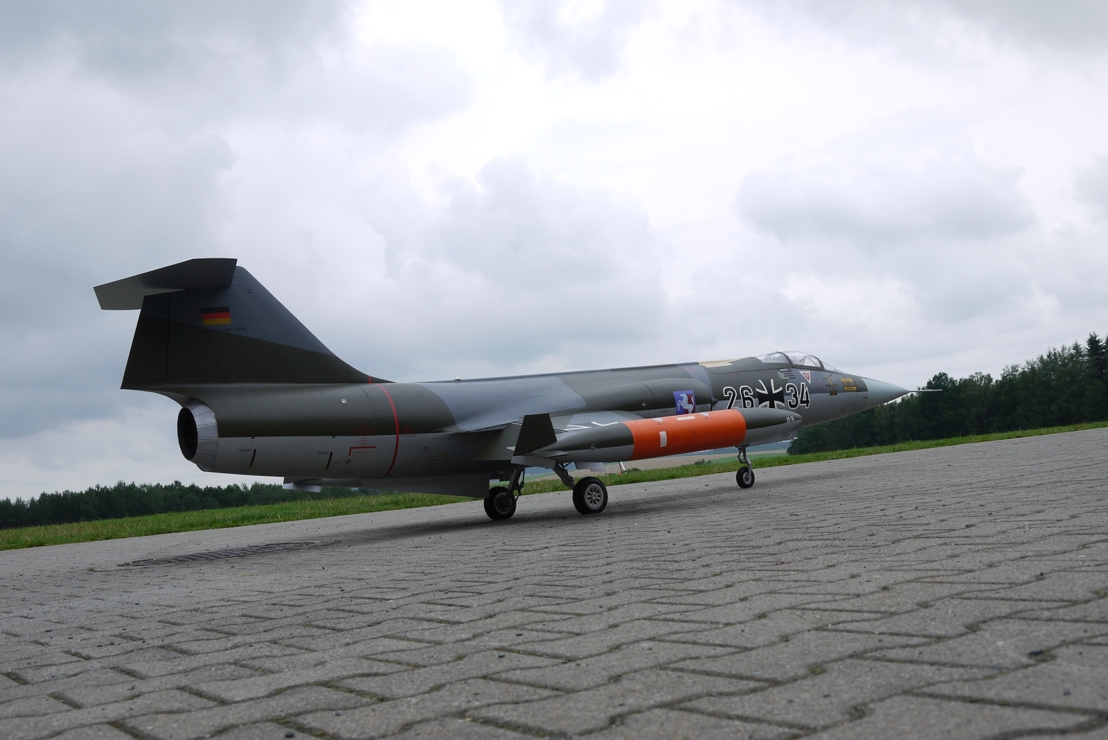Noch im Winter rief Thomas bei mir an und berichtete von seinem neuen Projekt. Eine F-104 sollte es werden, aus einem Bausatz von Airworld, im Maßstab 1:4. Das bedeutet ca. 4,2 m Rumpflänge und nicht ganz 1,7 m Spannweite, ohne Tiptanks – immerhin. Ohne jetzt den vielstrapazierten Vergleich mit der Hummel zu bemühen: Das aerodynamische Konzept der Maschine ist zumindest beachtlich. Die Abmessungen des Modells entsprechen, unter Berücksichtigung des Maßstabes, ziemlich gut denen des Originals, bis hin zum Pendel-Höhenruder und dem Flügelprofil, das extrem dünn ist und einen Nasenradius hat, der dieses Wort genaugenommen gar nicht verdient.