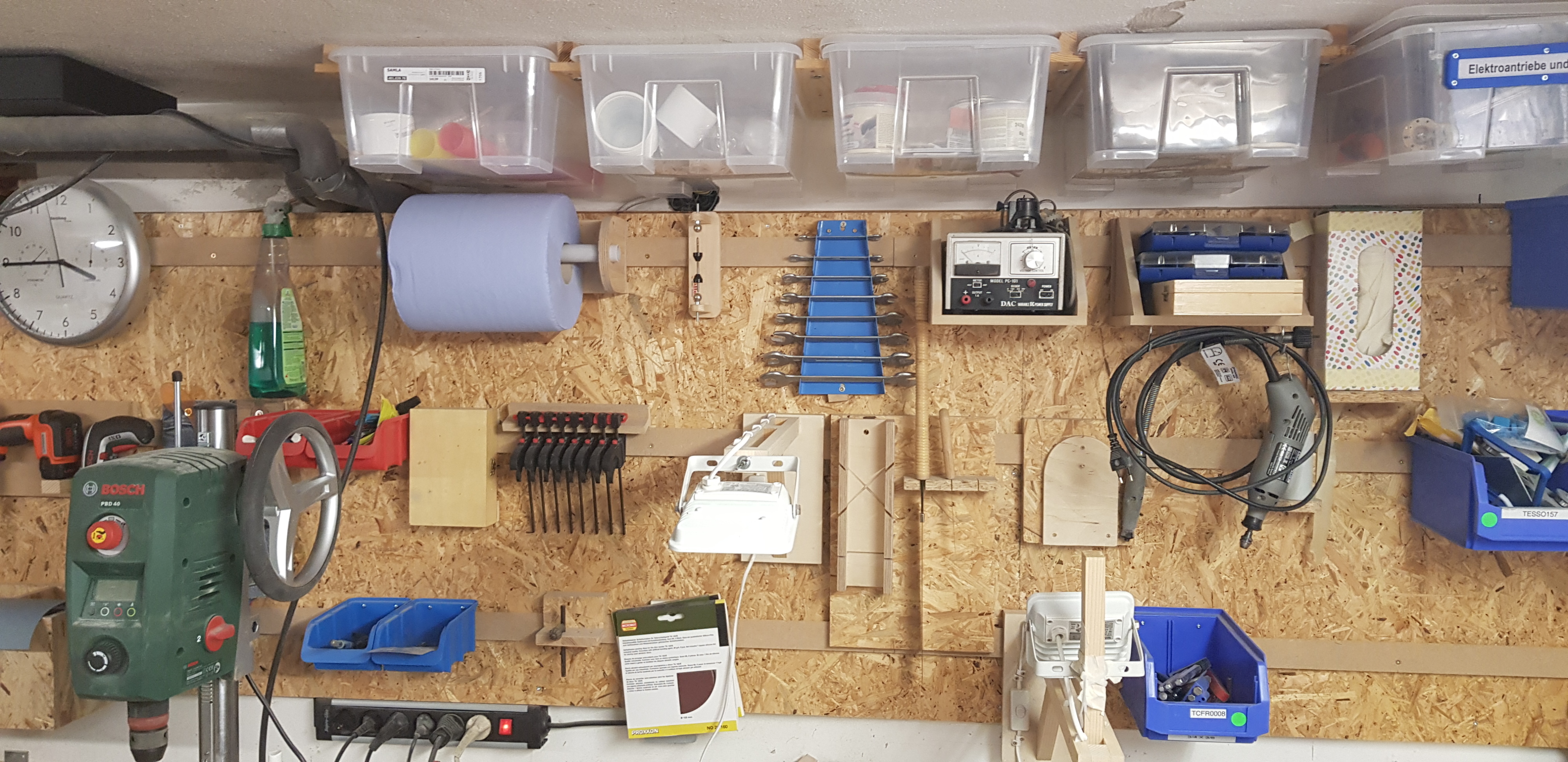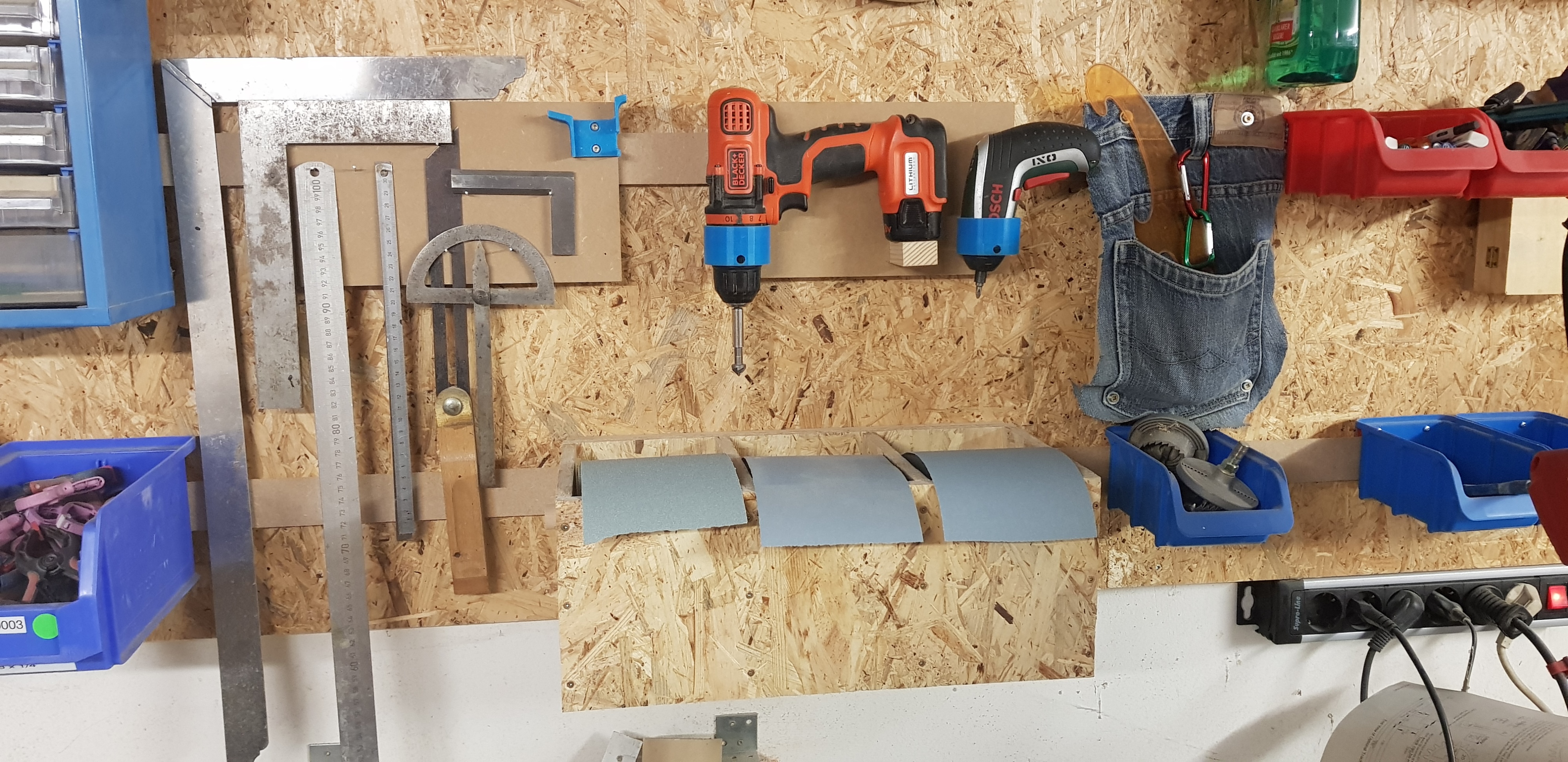 French Cleats: Leisten mit 45° Schnitt eignen sich prima für ein flexibles Ordnungssystem in der Werkstatt. Um- und Neuordnen der Werkzeuge geht in Sekunden!