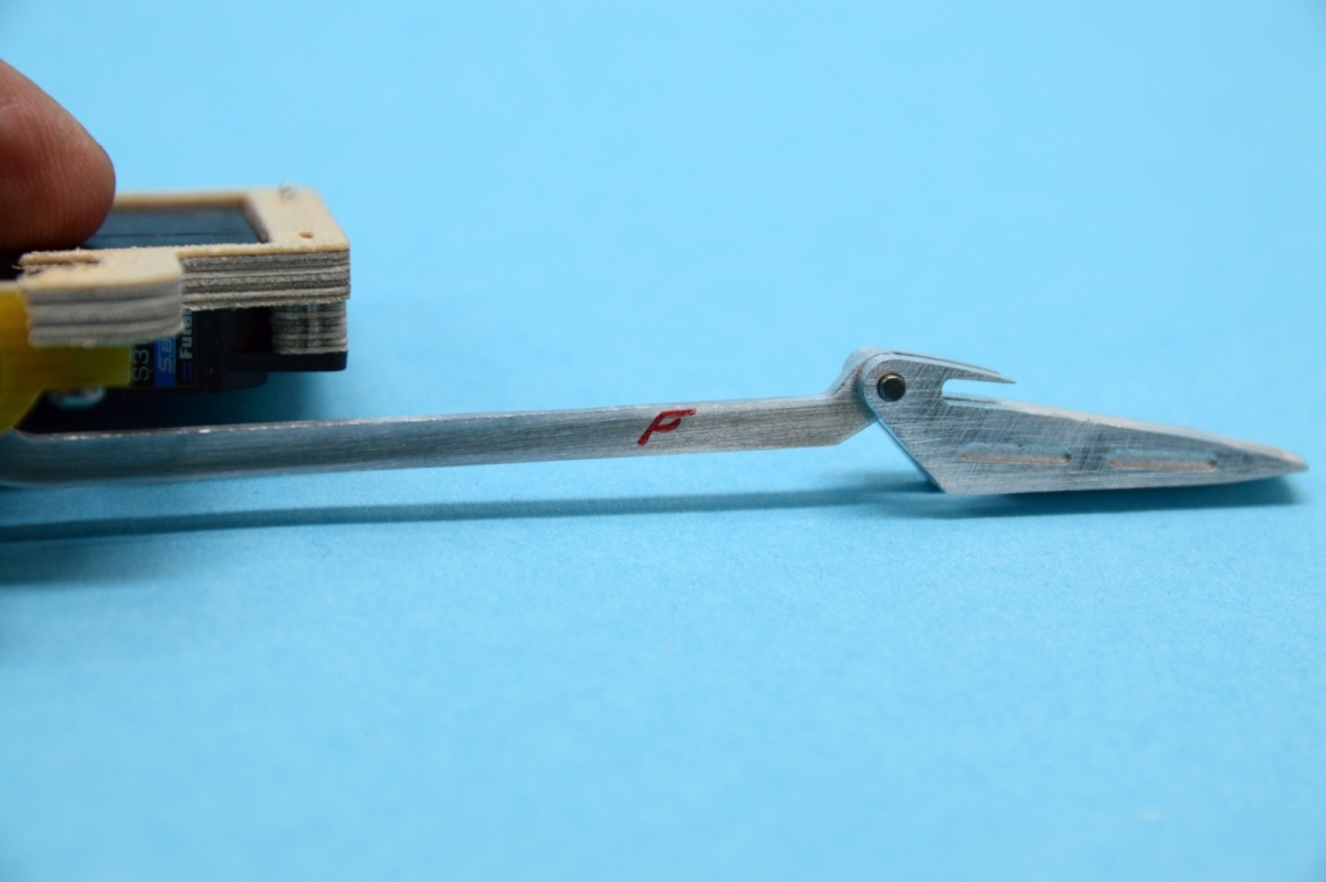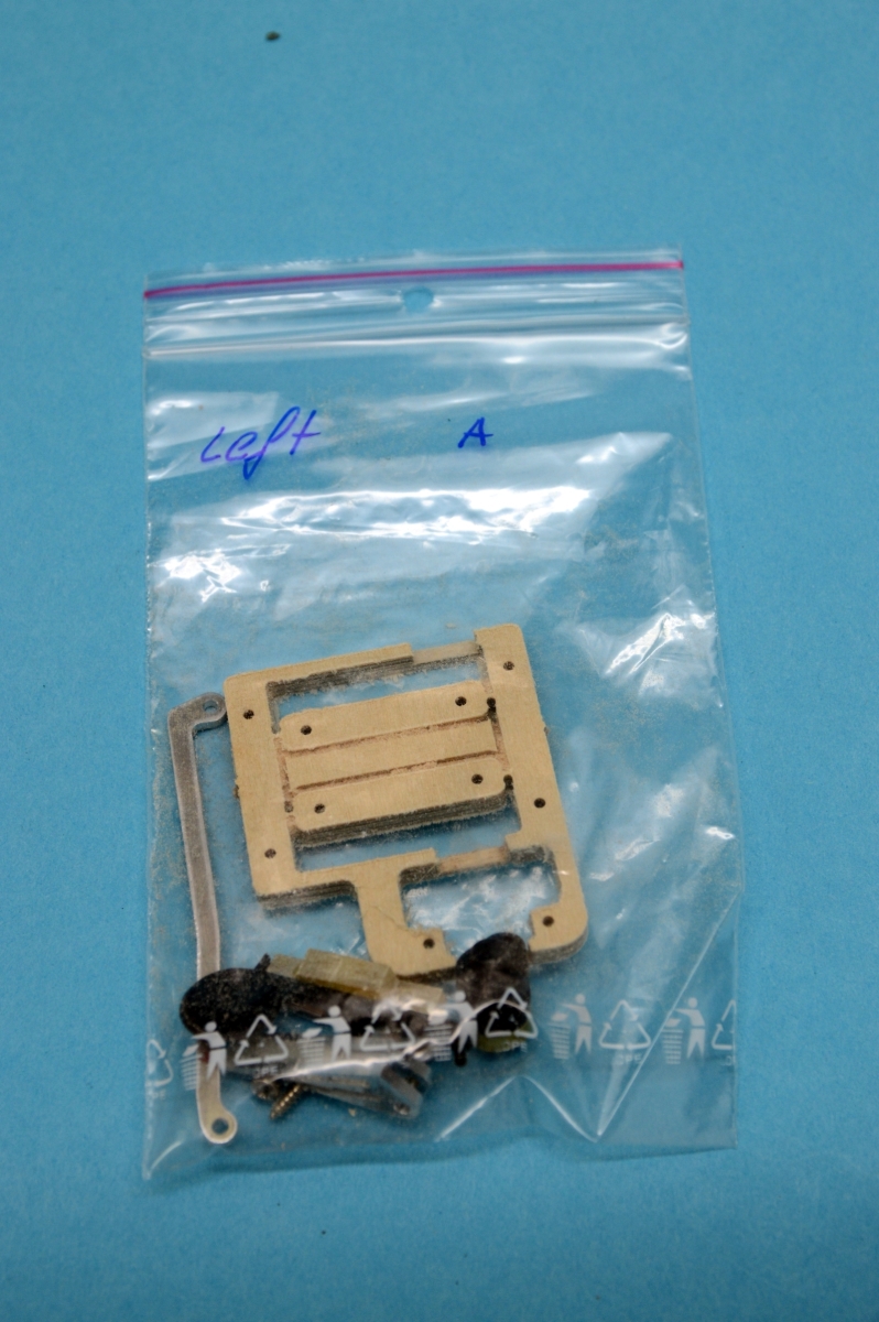 Der Logik folgend, fangen wir mit dem äußeren Querruder an. Warum? Nun, jedes Servo erhält sein eigenes Verlängerungskabel, das in jeweils richtiger Länge beiliegt, und da ist es am einfachsten, von außen nach innen diese Kabel einzuziehen. Der Klarsichtbeutel für das linke äußere Querruder darf seinen Inhalt als Erster in ein Behältnis spucken. Das ist wichtig, zu schnell geht sonst eines der Kleinteile verloren. Besonders wichtig machen sich hier gerne die winzigen Stahlstifte der Alu-Ruderhörner, haben nichts Besseres zu tun, als sich in die hinterste Werkstattecke zu verabschieden. Das gilt es zu verhindern! Ersatz ist nicht dabei. Also aufpassen.