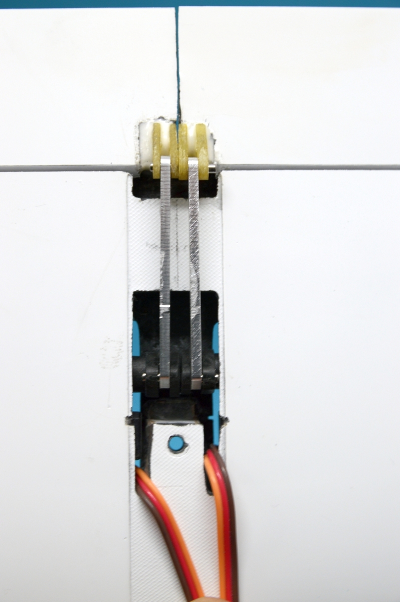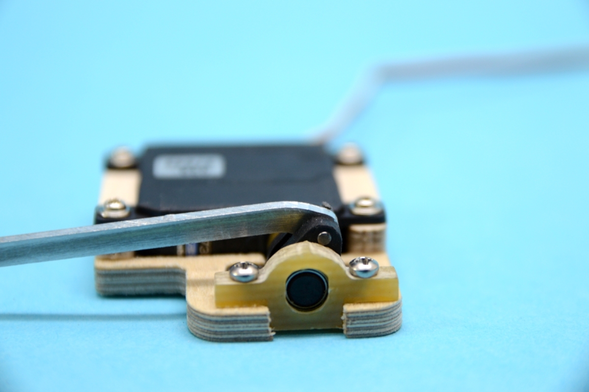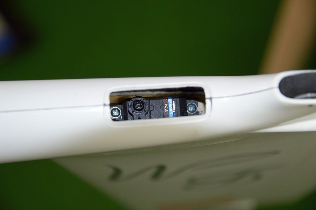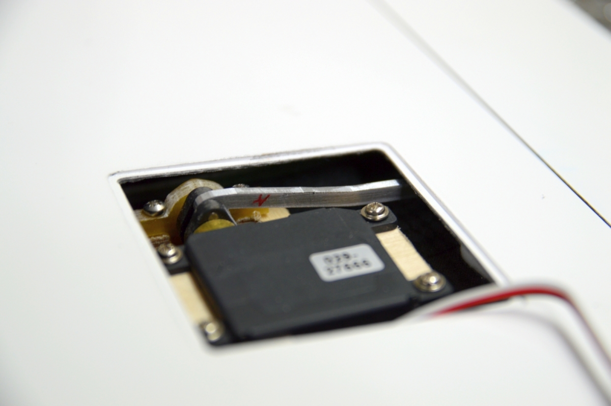 Es muss alles so vorbereitet sein. Und noch etwas: Der Einbau dauert, ist der mit Abstand größte Bauabschnitt des Modells. Auch ist nicht zu vermeiden, dass die kurzen Sicherungsstifte mehrfach aus den Augen der Ruderhörner raus- und wieder reinmüssen. Ist das Servo mit seinem Rahmen verschraubt – die LDS-Anlenkung sitzt auf dem Vielzahn-Abtrieb, am anderen Ende der Schubstange ist nichts, Ruderhorn also entfernt – gelingt das Einfädeln in den Servoschacht nur mit um 45 Grad geschwenkter Einheit. Und das auch nur, wenn der Durchbruch in der Oberschale der Fläche an relevanter Stelle bereits geschaffen wurde. Denn da muss die Schubstange durch.