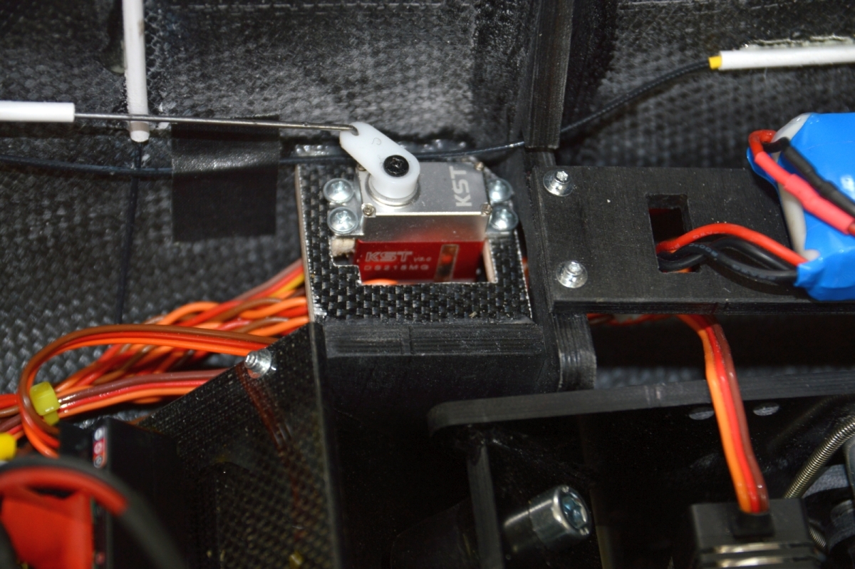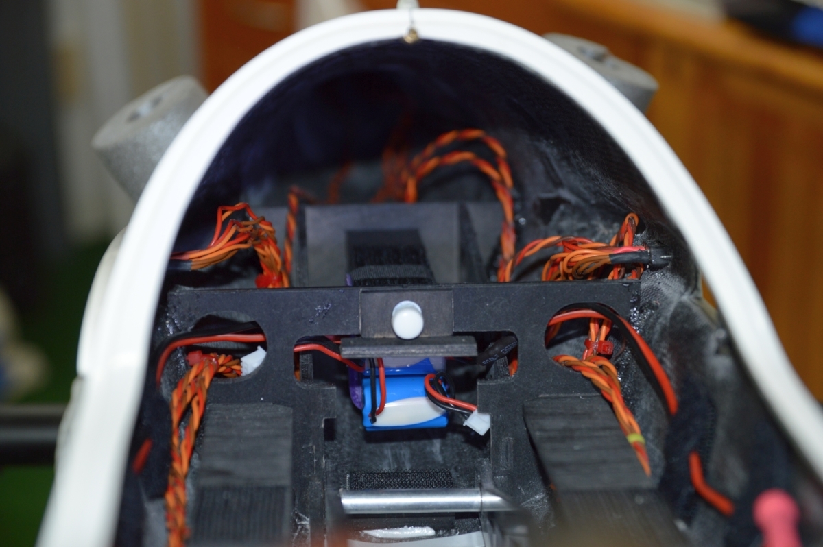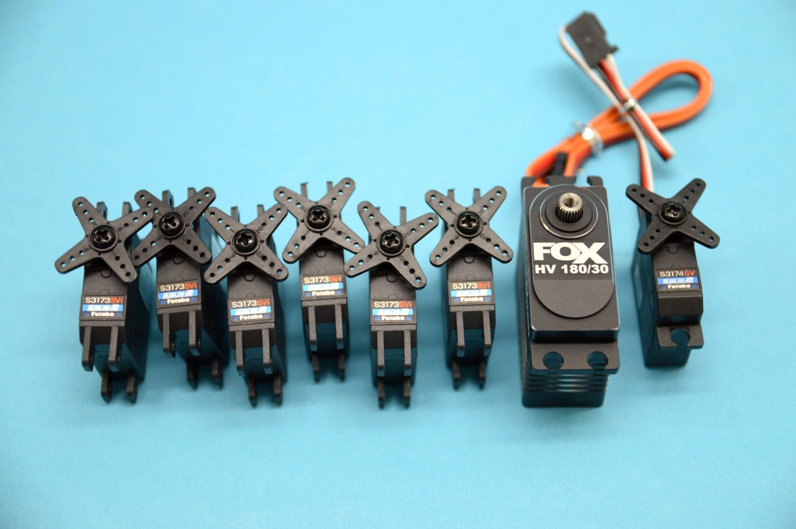 Bei einem so großen und teuren Modell ist beste Technik selbstverständlich, da haben Billigkomponenten nichts zu suchen. Und ein redundantes Empfangssystem ist ebenfalls dringend anzuraten, denn auch ein LiPo-Akku oder ein Empfänger kann ausfallen. Wenn jeweils zwei davon an Bord sind, halbiert sich dieses Horrorszenario, weil der gleichzeitige Ausfall jeweils zwei gleicher Komponenten so unwahrscheinlich ist wie ein Lottogewinn, selbigen abzuholen und beim Verlassen des Gebäudes vom Blitz erschlagen zu werden. Im Testmodell sind folgende Komponenten verbaut: 2 x MKS HV 6110 an den Höhenruderblättern, 6 x Futaba HV S 3173 SVi in den Flächen, 1 x FOX HV 180/30 am Einziehfahrwerk, 1 x Futaba S 3174 am Seitenruder, 1 x KST DS 215 MG an der Schleppkupplung.