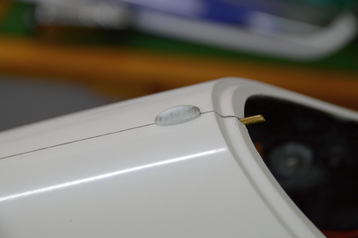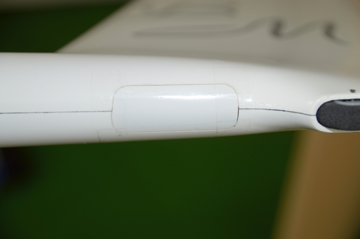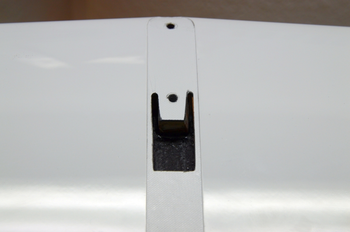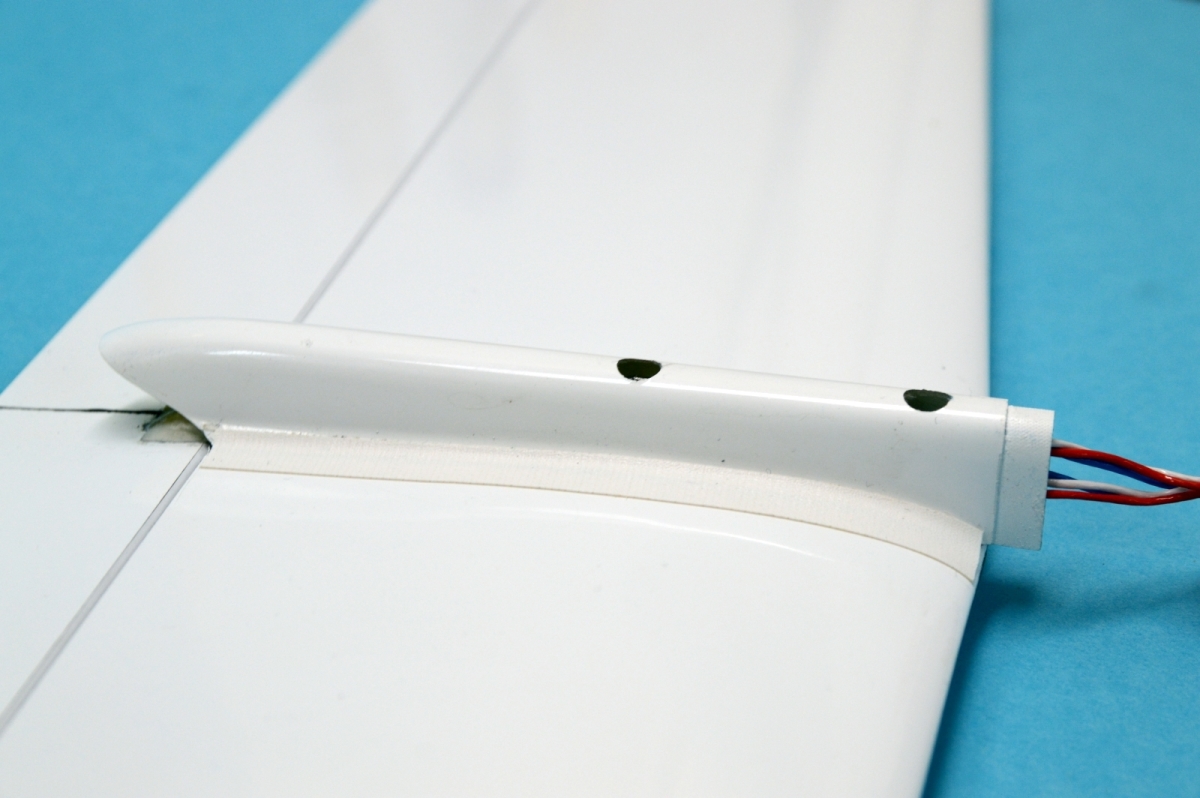 Ist der Trennschnitt mit der Diamant-Trennscheibe gemacht, sitzen die Servos an ihren Plätzen, geht es darum, die insgesamt vier GFK-Ruderhörner einzubauen und ordentlich zu verharzen, was wegen ihrer Widerhakenform auch gut gelingt. Da die ganze Angelegenheit auf der Leitwerksoberseite zu liegen kommt, geht das deutlich einfacher als bei den Flächen. Unsichtbar machen das dann zwei toll gebaute Abdeckungen aus GFK, unter der vorderen verschwinden dann auch die Kabel, die in den Rumpf hineingehen und nach vorn zur Empfangsanlage gehen.