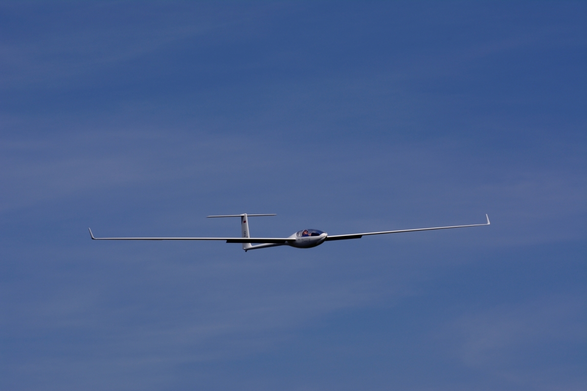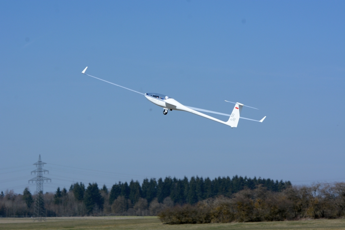 Zurück in den Genussmodus, Flächenklappen zwei Millimeter nach unten. So entern wir die Thermik, von der ist allerdings kaum was zu spüren, und es spricht für die schöne Polin, dass sie auch diese Übung perfekt beherrscht. Kein Steigen, kein Sinken, sagt jedenfalls das Vario. Aber ein Nullschieber ist ja auch Thermik. Und nein, die 9,2 Kilogramm Fluggewicht sind nicht zu viel, sondern ein sehr guter Kompromiss zwischen Thermikleistung und Durchzug.