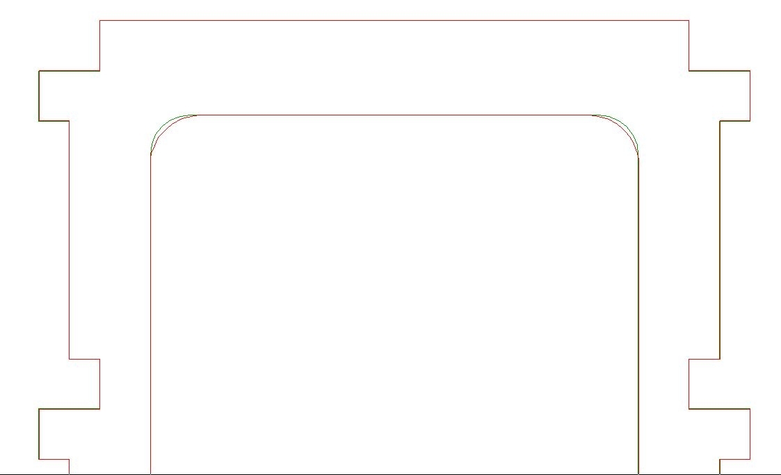 Nach den gemachten Erfahrungen war für mich abschließend ein Vergleich interessant. Was ist nun besser? Die selbst gezeichnete Variante des Spants 5 oder die aus der konvertierten DXF-Datei? Oder vielleicht besser formuliert: Wie weit kommt die selbst gezeichnete Variante an die aus der PDF konvertierten und nachbearbeiteten DXF-Variante heran. Der Vergleich ist aus Bild 13 ersichtlich. Hier ist die PDF-Variante in rot und die selbst gezeichnete in grün dargestellt, wobei beide Zeichnungen direkt übereinander gelegt wurden. Einziger signifikanter Unterschied sind die Bögen beim inneren Ausschnitt des Spants 5. Dieser kommt dadurch zustande, dass ich diese Bögen beim Nachbearbeiten nicht ganz so verkniffen gesehen habe, da es auf deren Maßhaltigkeit nun wirklich nicht ankommt. Aus meiner Sicht sagt Bild 13 mehr oder weniger eindeutig: Beide Varianten sind gleichwertig. Da der Aufwand für die Nachbearbeitung jedoch im Falle der PDF-Konvertierung deutlich geringer ist und man alle isolierten Zeichnungen in der PDF-Konvertierung direkt und unbearbeitet übernehmen kann, ist die Sache für mich eindeutig. Die Anschaffung von PDF2DXF hat sich definitiv gelohnt.