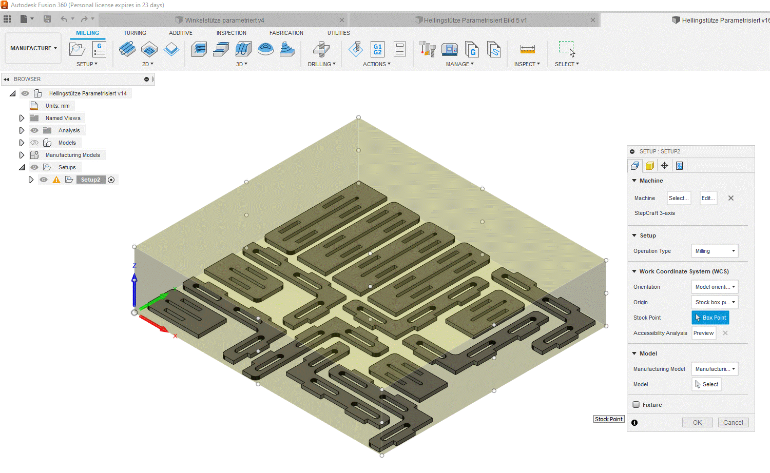 In den letzten drei FMT-Ausgaben haben wir eine Musterkonstruktion mit dem parametrischen CAD-/CAM-Programm Fusion 360 begonnen. Bei diesem und ähnlichen Programmen, bei denen die Design-Historie in einer Zeitleiste festgehalten wird und somit die erstellten Skizzen mit den erstellten Körpern verknüpft bleiben, kann man diese Skizzen mit parametrierten Maßen versehen. In der FMT 02/2023 beschäftigen wir uns mit der Manufaktur-Sektion.