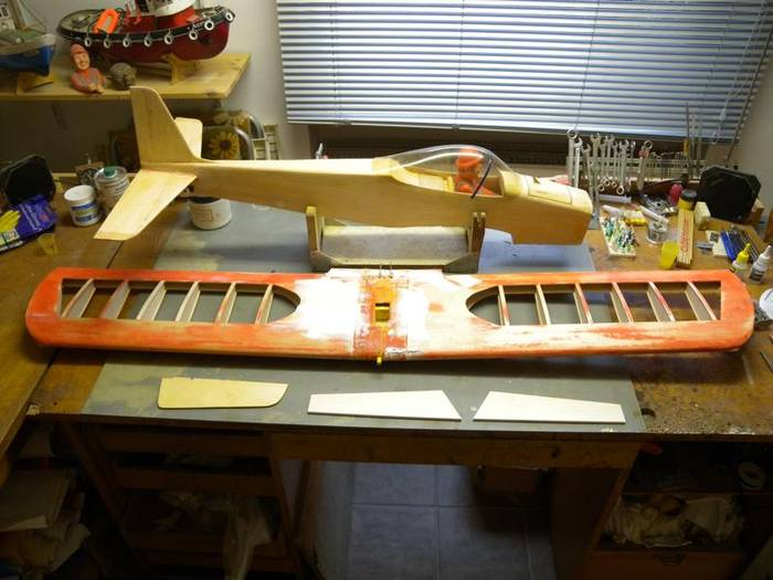 Im nächsten Schritt galt es, die Umrüstung auf Elektroantrieb zu konzipieren. Zum einen werden Brushlessmotoren anders befestigt als die klassischen Zweitakter. Zum anderen war ein Akkuwechsel damals ebenfalls nicht vorgesehen – und immer wieder die Fläche abschrauben, um den LiPo zu tauschen, erschien mir recht aufwendig. Ich entschied mich für einen Akkuschacht von oben, direkt vor dem Cockpit. Somit konnte ich später auch noch den Schwerpunkt individuell einstellen.
