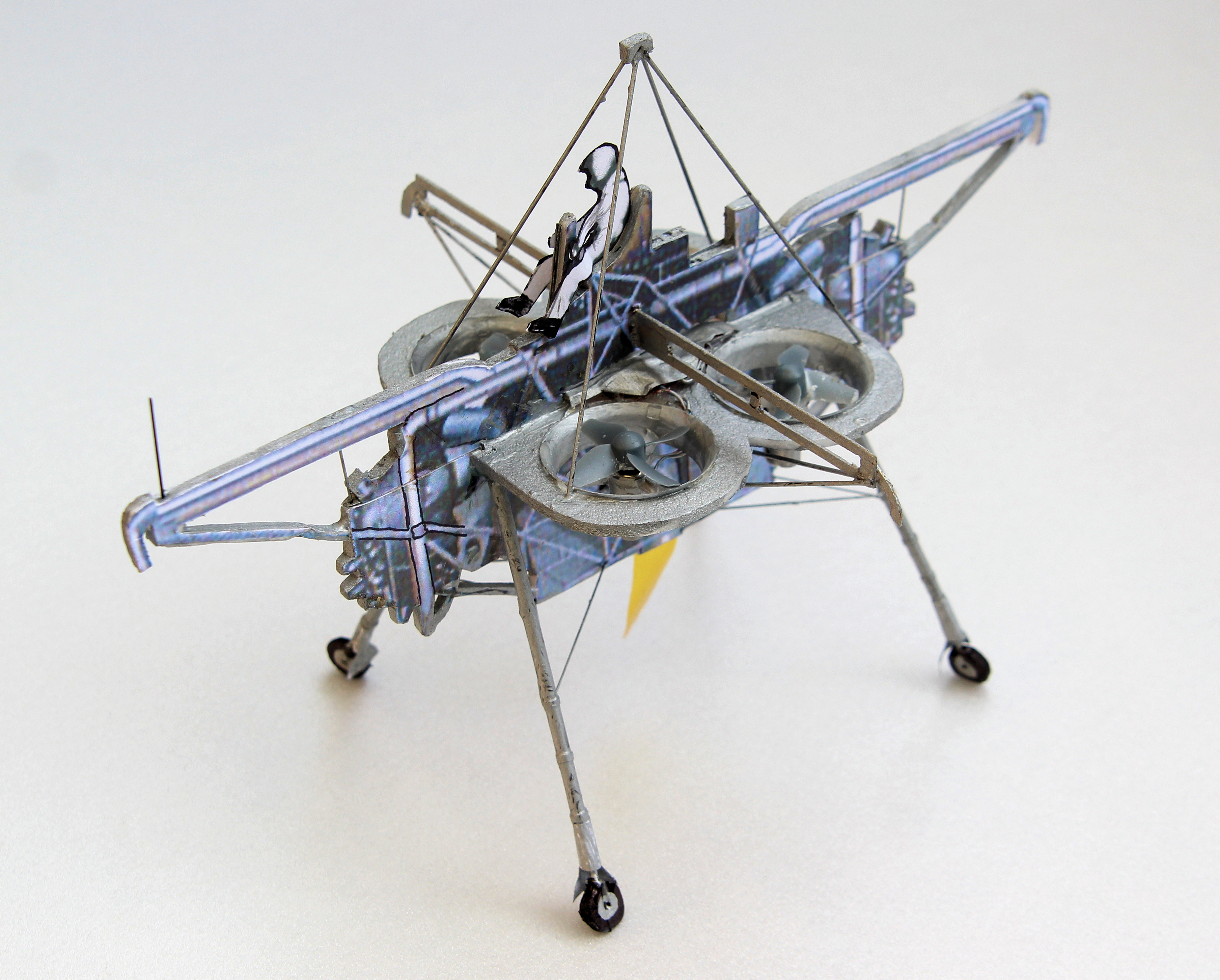 In den 1950er Jahren wurde mit dem Thrust Measuring Rig (deutsch: Schubmessgestell) ein experimentelles VTOL-Flugzeug entwickelt – zur Erprobung von Senkrechtstart und -landung durch Strahltriebwerke. Wegen dem merkwürdigen Aussehen hat man dieses Schwebegerät auch als Flying Bedstead (fliegendes Bettgestell) bezeichnet. John Stennard hat dieses historische Fluggerät als Mikro-Copter nachgebaut.