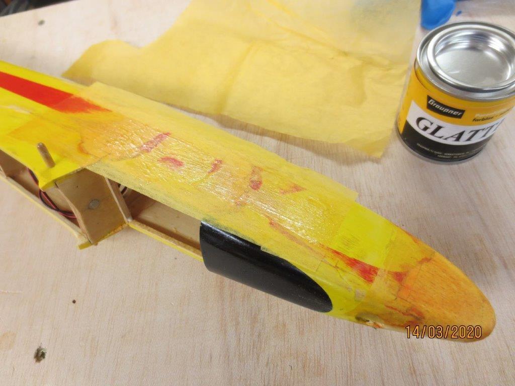Ein gescheiterter Hochstart und der Rumpf sah so aus: Von der Flächenauflage nach vorne an beiden Seitenwänden Splitterbrüche. Was tun? Der Kastenrumpf wurde während der Bauphase aus einem originalen Filou-Bausatz stilgerecht aufgebaut, mit Papier bespannt und mit Nitrolack farbig gestaltet. Und genau das ist die Hinterhältigkeit dieser Reparaturstelle, alles nicht so einfach, aber machbar. Wie’s geht, zeigen wir in der FMT 10/2020.
