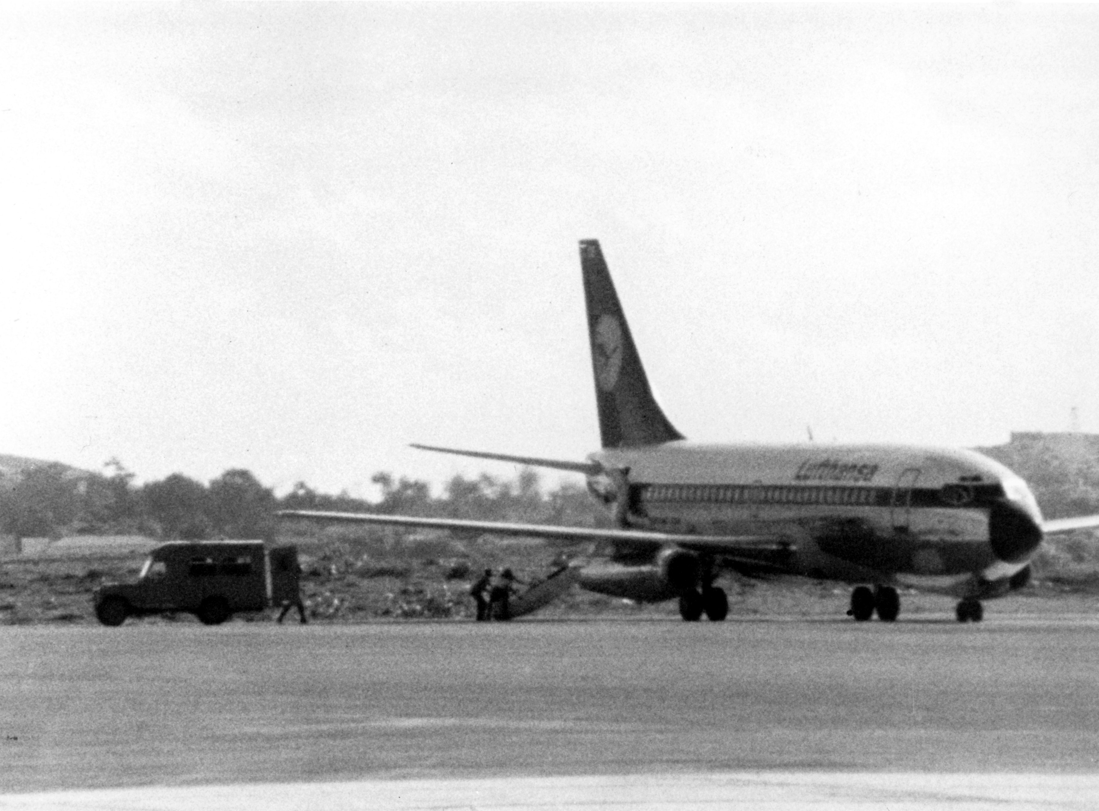 17.10.1977: Die „Landshut“ auf dem Flughafen in Mogadischu. Foto: © dpa Bildarchiv