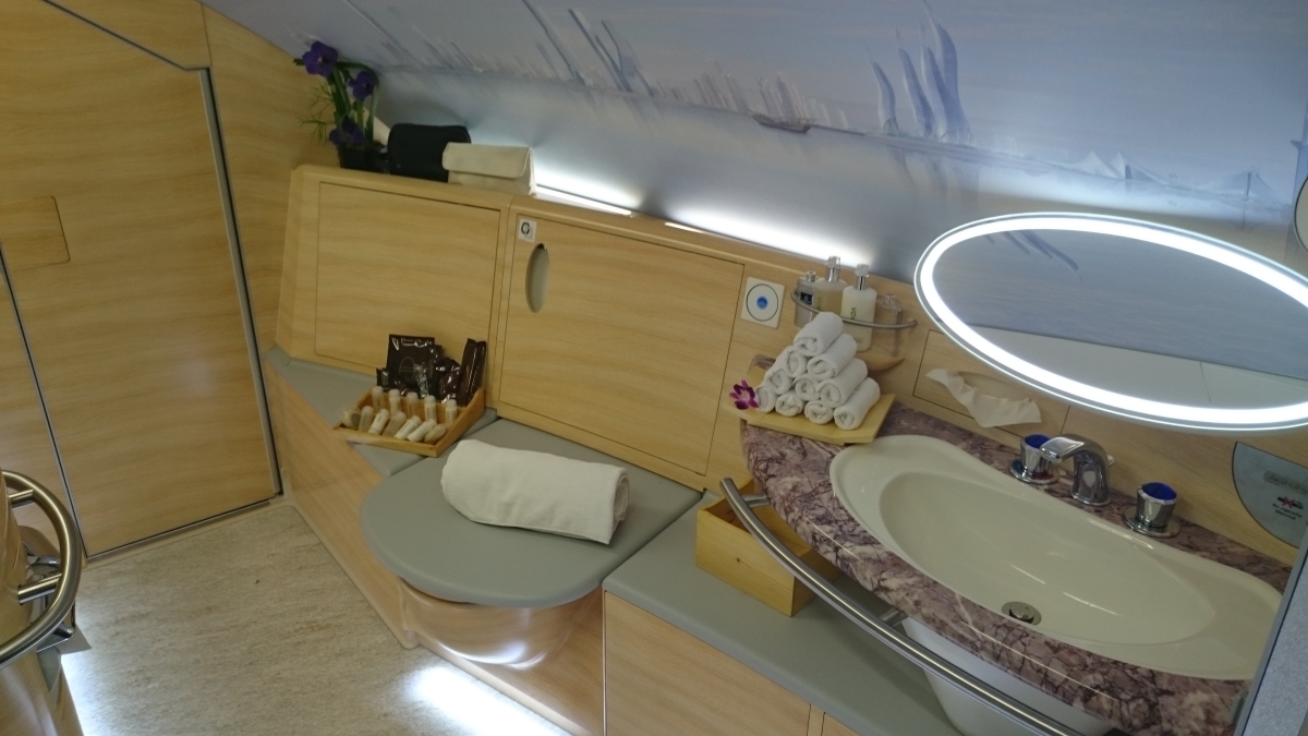 Fliegen wie mit einem Privatflugzeug. Damit bewirbt die Airline Emirates seine A380-Langstreckenflotte. Und wahrlich entdeckt man im Innern der First-Class-Abteilung private Suiten und sogar Duschen, in der Business Class immerhin Flachbettsessel. FMT-Autor Michael Rützel hat sich anlässlich der ILA in diesem Luftfahrt-Riesen mit seinen fast 80 m Spannweite umgesehen, seine Bildeindrücke finden Sie in der Fotostrecke.