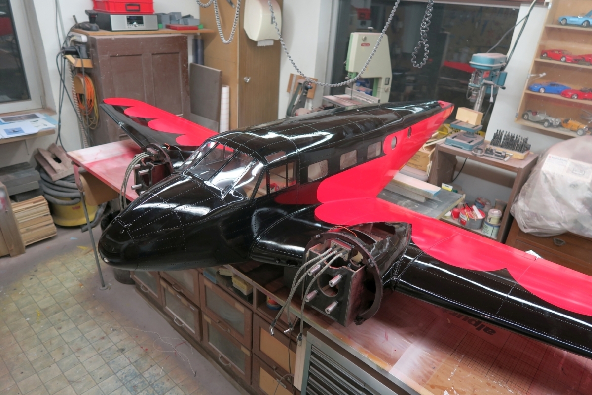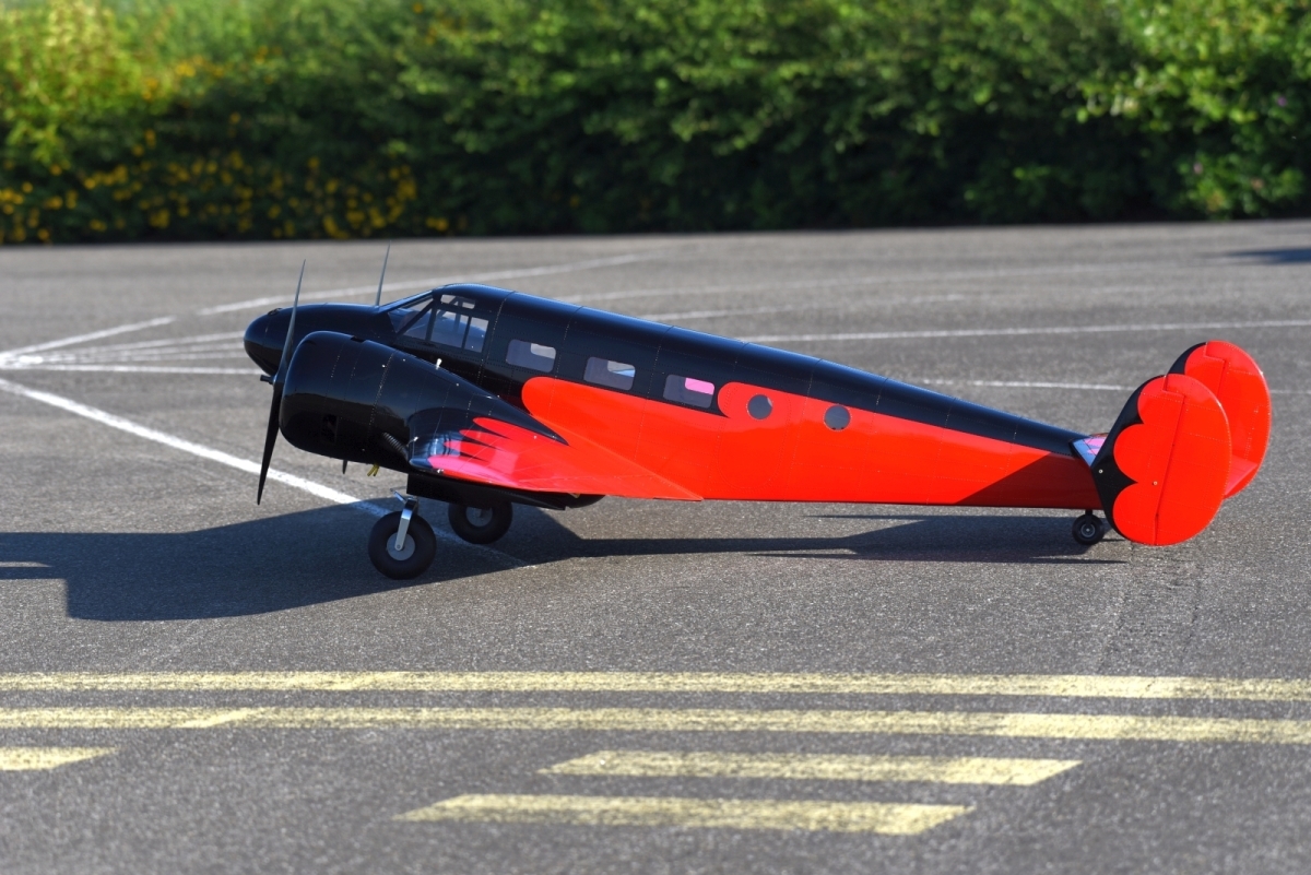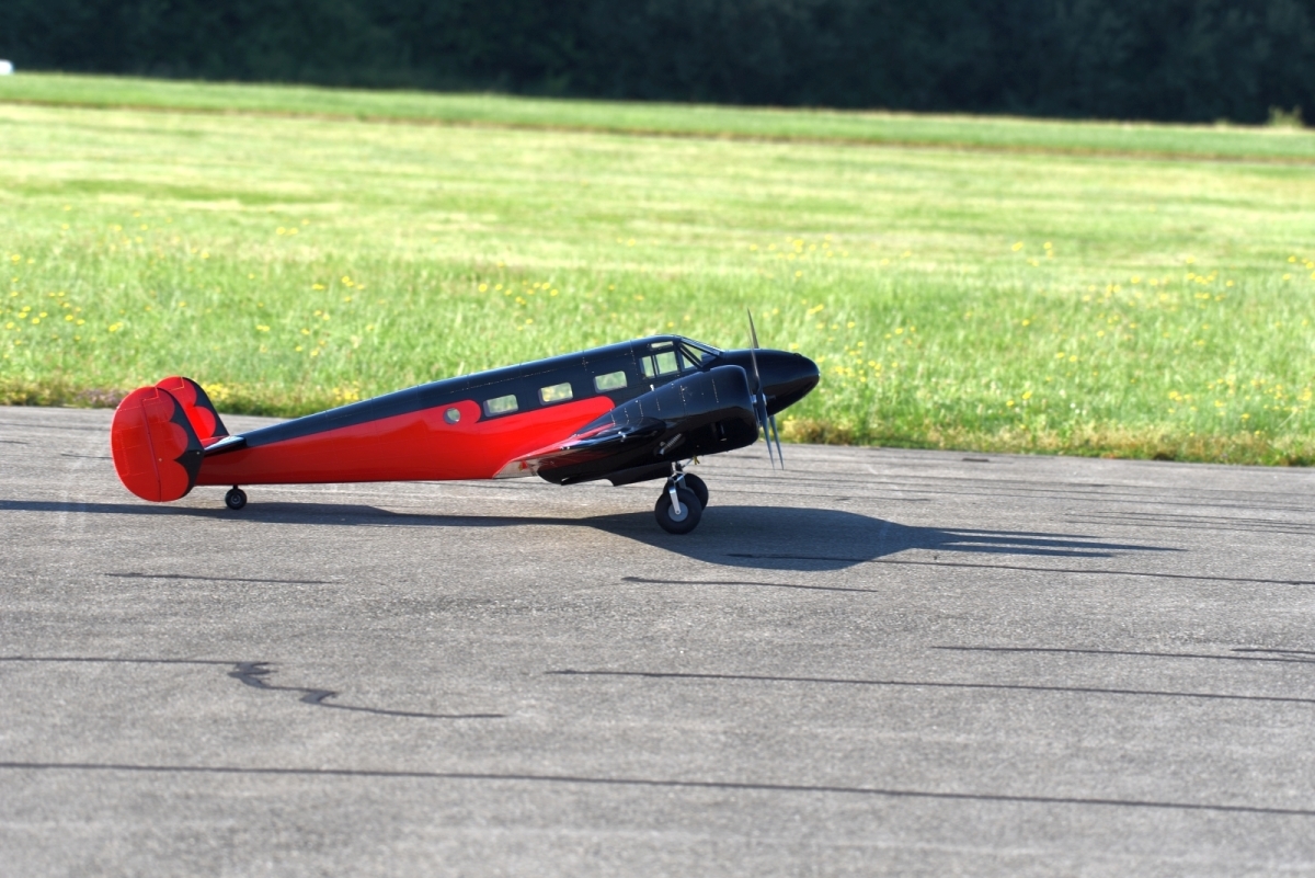 Wie sagt man so schön: Nach dem Projekt ist vor dem Projekt! Hugo Christen hatte wieder Platz auf dem Basteltisch und bei seinen anderen Fliegern war der Service gemacht, also was tut man? Natürlich im Netz schauen, was sich so am Himmel herumtreibt. Und so wurde er aufmerksam auf eine Maschine, die eigentlich nicht für das gemacht war, wofür sie gebraucht wurde: Da flog doch an einer Flugshow eine rot-schwarze Beech 18 mit sattem Rauch im Tiefflug über die Piste, um anschließend richtig schönen, dynamischen Kunstflug an den Himmel zu zaubern. Das war's, dieses Vorbild sollte es werden. In der FMT 11/2019 beschreibt Hugo Christen seinen Eigenbau der Beech 18, ergänzend dazu kommen in der folgenden, riesigen Bildergalerie weitere Motive, für die im Heft einfach kein Platz mehr war. Fast jeder Bauschritt ist dokumentiert!