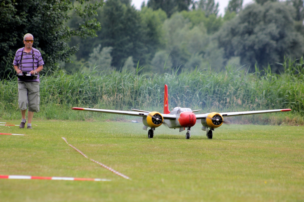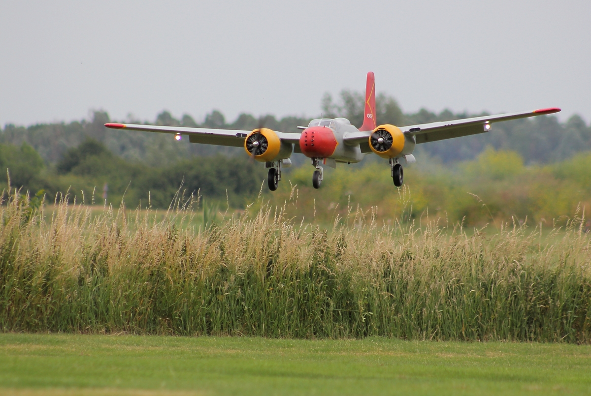 Begleitend zum Artikel in der FMT 02/2017 gibt's hier weitere Fotos des gewaltigen Eigenbaus von Jan Hermkens: einer Douglas A-26B Invader im Maßstab 1:5,9 mit einer Spannweite von 3,6 m.