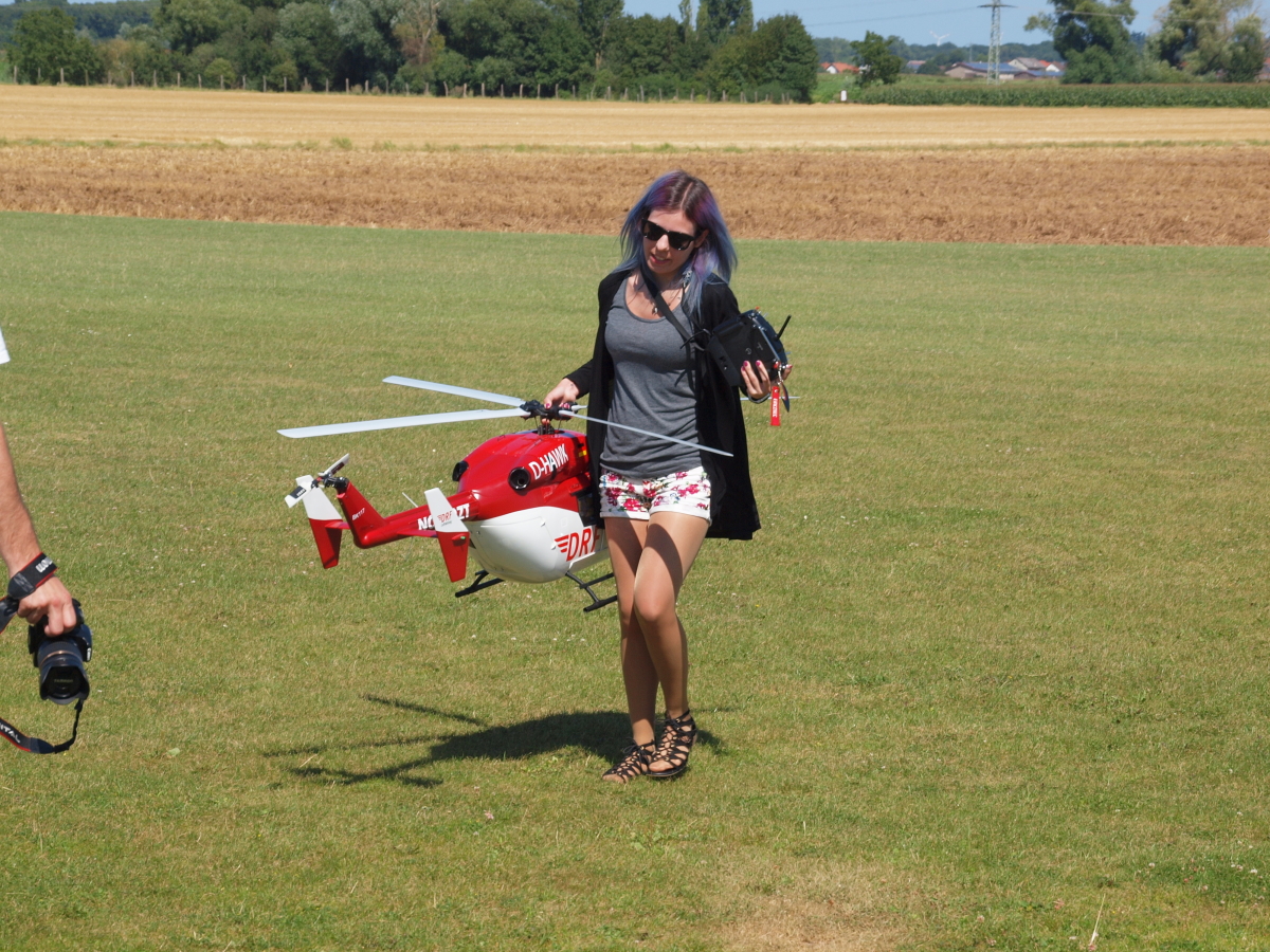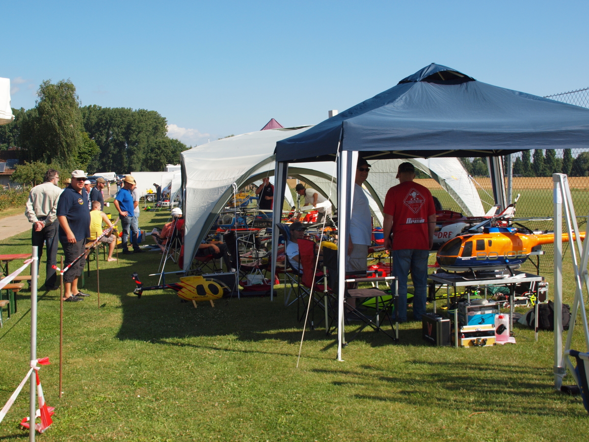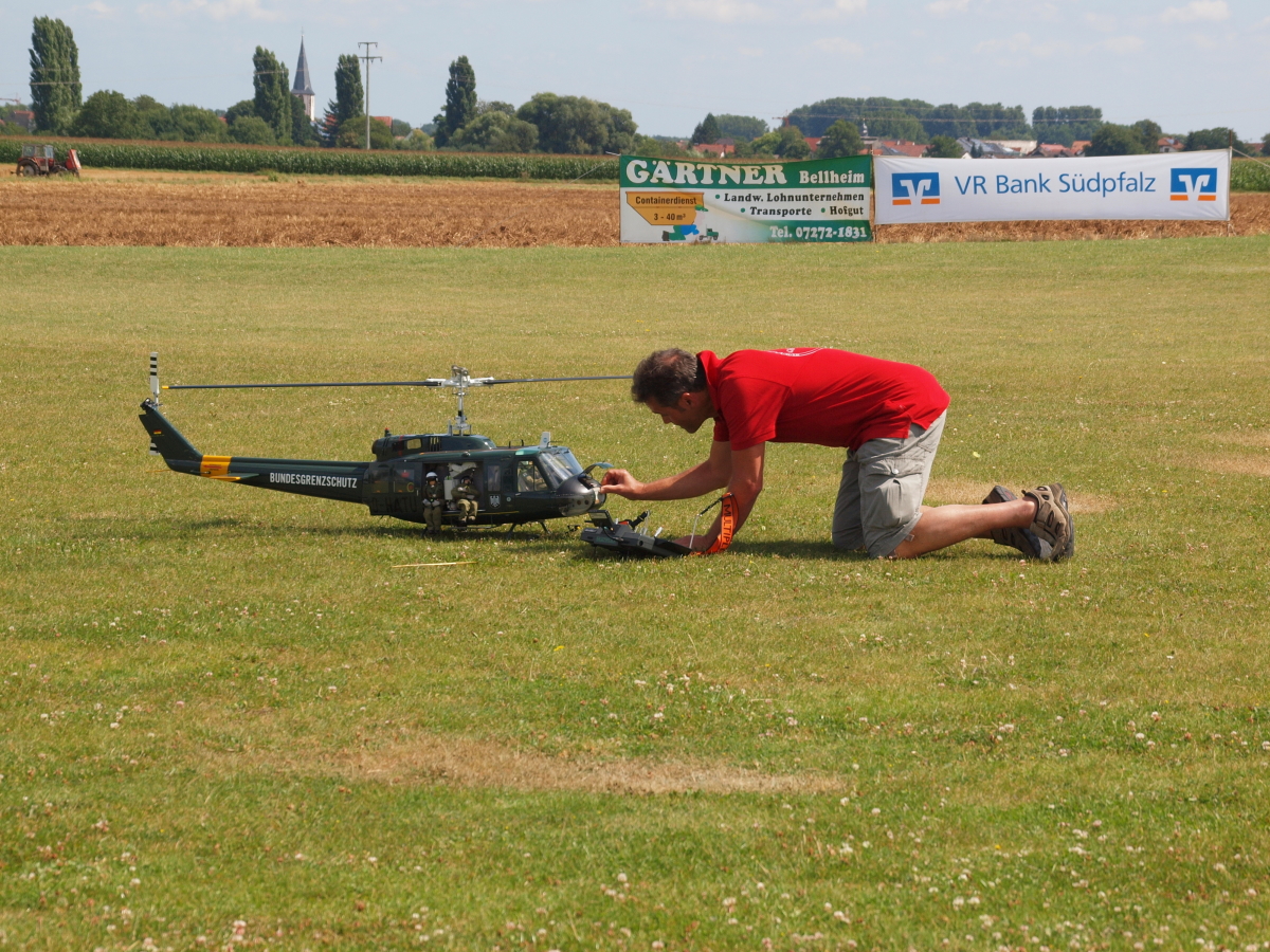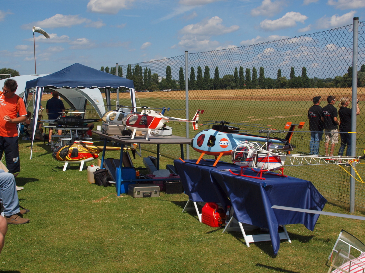 Doch dieses Jahr scheint sich etwas geändert zu haben. Die Zahl der Großmodelle ist nicht weiter gestiegen, man hat eher den Eindruck, dass diese zumindest beim Meeting etwas rückläufig sind. Auch die Weiterverbreitung des Turbinenantriebs scheint etwas gebremst zu sein. Kleinere Helis in der Größe von etwa 1,5-m-Rotordurchmesser bis etwa 2,40 m sind jetzt sehr viel mehr vertreten als in den vergangenen Jahren, der Elektro-Antrieb hat sich auf breiter Front durchgesetzt, so dass man durchaus von einer Beruhigung des Wachstums reden kann. Damit kommen die Semiscale-Helis wieder in die Regionen, die auch den normalen Helipiloten animieren können, es auch mal mit einem Rumpfhubschrauber zu versuchen. Dies ist sehr wohl positiv zu sehen, erweitert es doch die Vielfalt von Modellen und Teilnehmern. Damit kann man das auch diesjährige Meeting als absolut gelungene Veranstaltung sehen, mit traumhaftem Wetter, schönen Modelle und mit dem FMC-Offenbach einem tollen Gastgeber mit einem super Fluggelände und einer perfekten Gastfreundschaft.