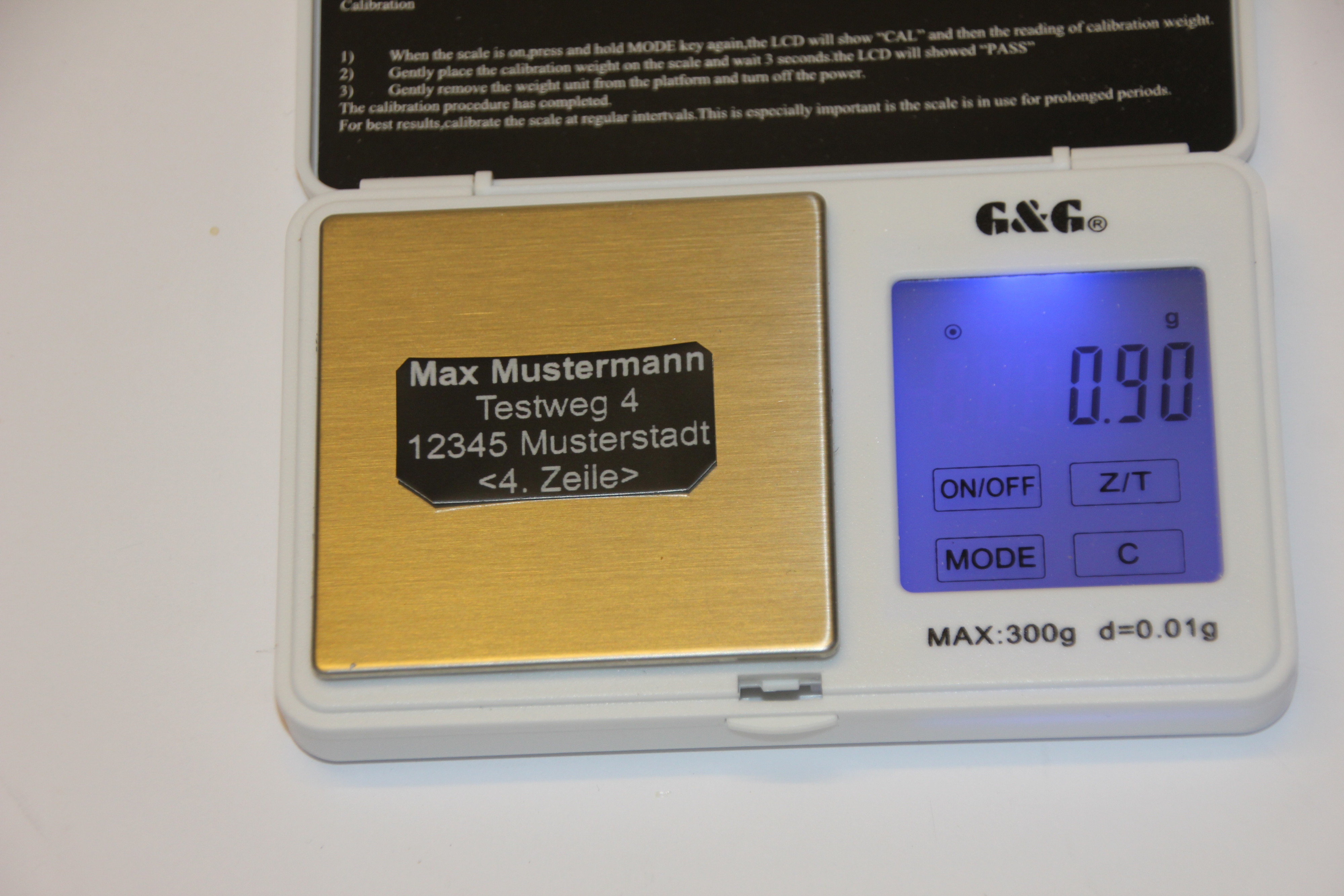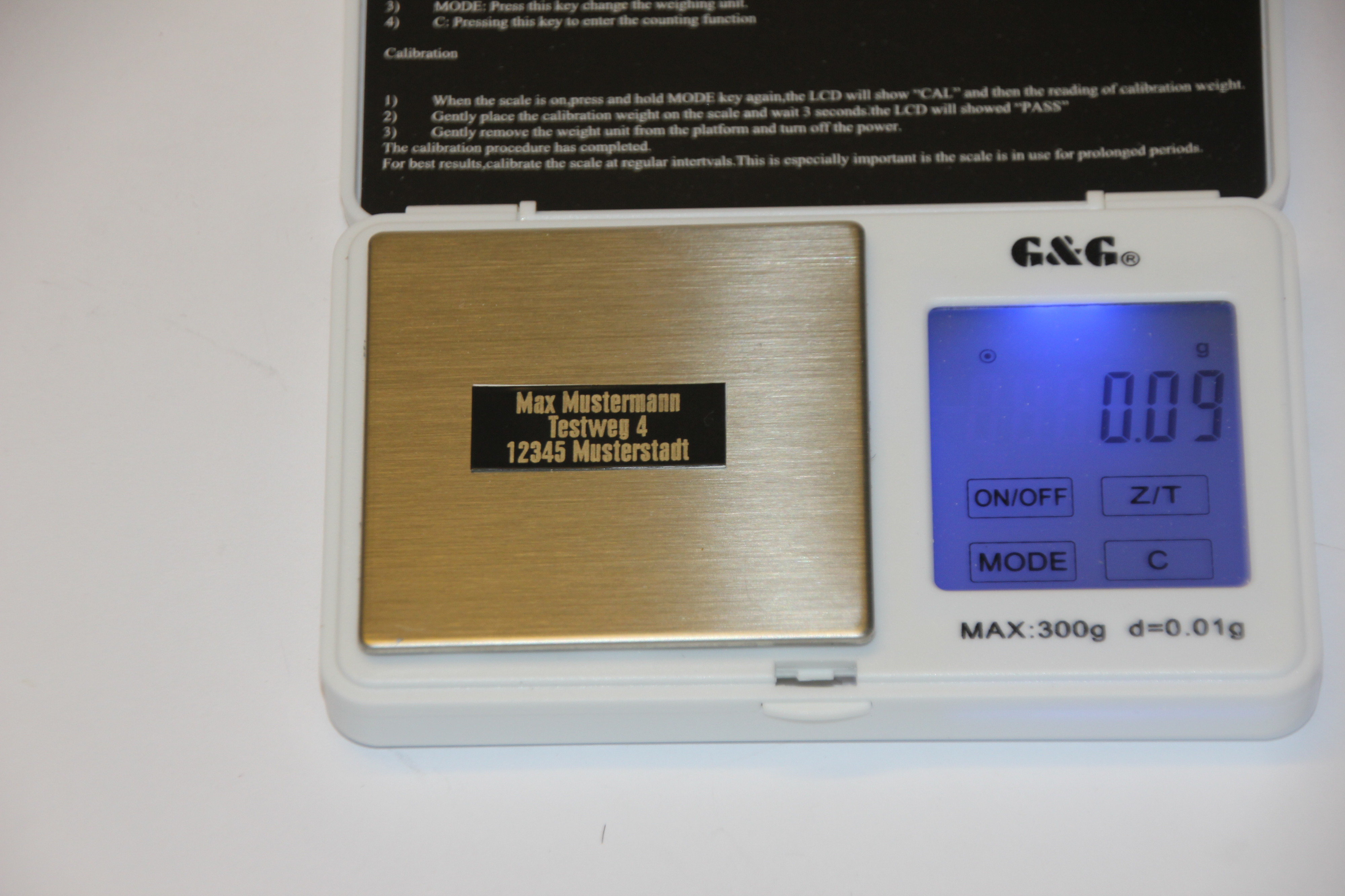 Zum Vergleich: Das kleinere Schild wiegt nur 0,09 g.