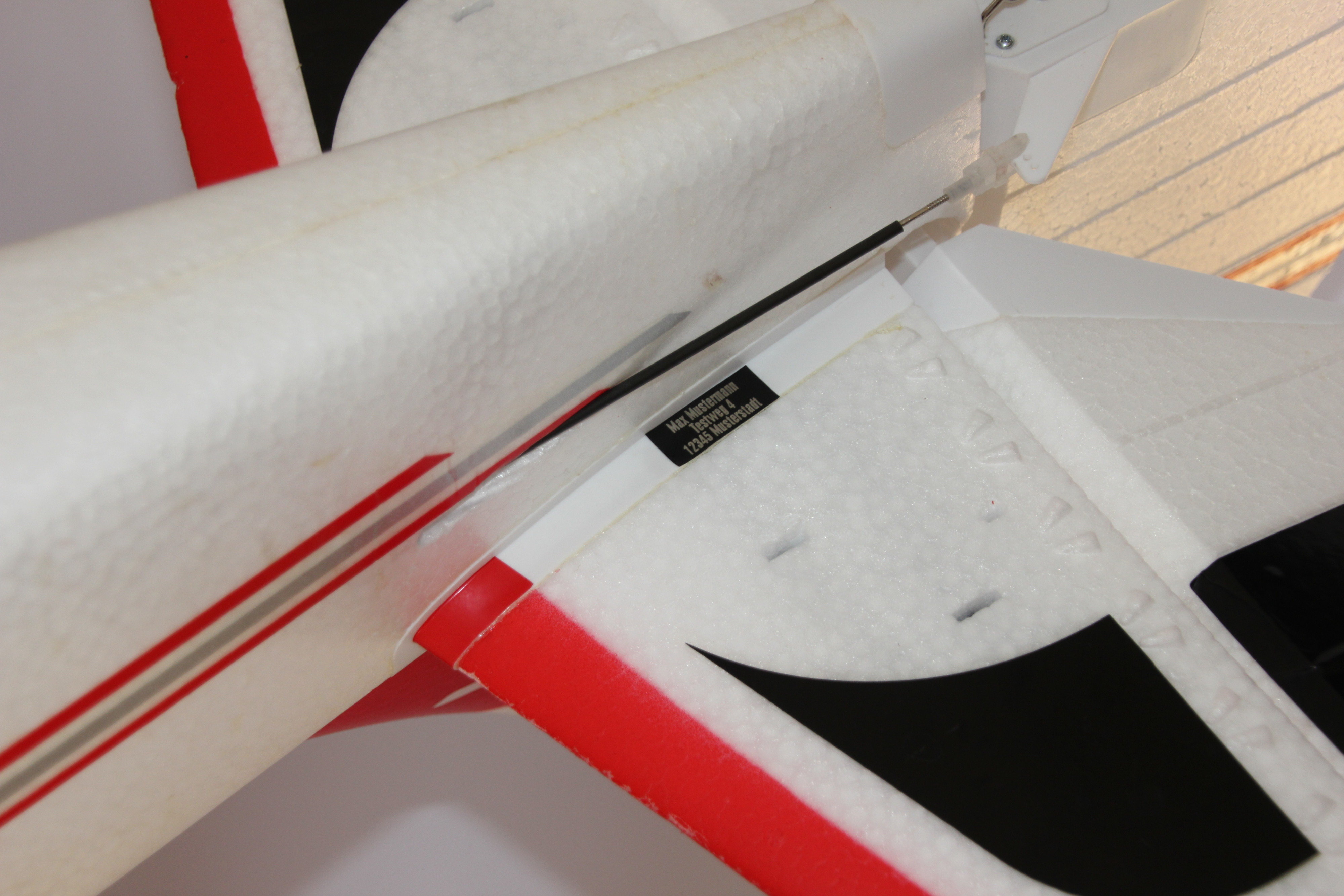 der Unterseite des Rumpfes, unter dem Höhenleitwerk oder auf der Unterseite der Tragfläche anzubringen, so dass es nicht zu sehen ist, wenn das Modell aufgebaut auf dem Platz steht. Ebenso möglich ist eine Montage unter einer transparenten Kabinenhaube, wo das Adressschild erst bei genauer Betrachtung wahrgenommen wird. Mit etwas Überlegung ist es so auch sehr gut möglich, eine Beschilderung beispielsweise auch an einem Scale-Modell an einer unauffälligen Stelle zu platzieren.