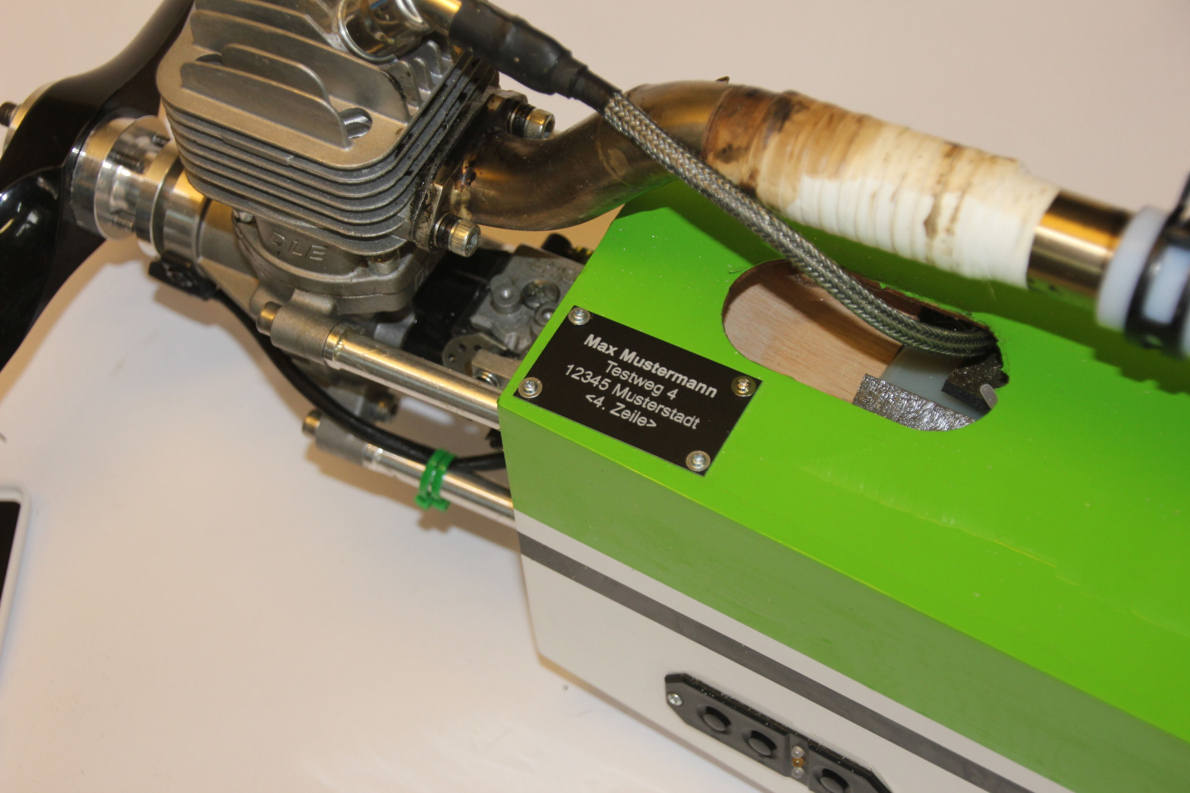 Strittig ist aktuell noch die Befestigung der Schilder im Inneren des Modells, beispielsweise unter der Kabinenhaube oder dem Akkudeckel. Im Falle eines Zwischenfalls würde die Haube bzw. der Deckel wohl ohnehin geöffnet und somit auch der Eigentümer sichtbar. Bis diese Frage jedoch eindeutig geklärt ist, sollte man lieber auf Nummer sicher gehen und die Anbringung am Modell wie bereits beschrieben vornehmen.
