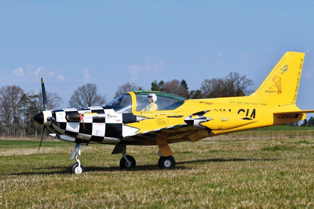 Bernd Neumayrs Marchetti hat schon einige Antriebsvarianten hinter sich. Ursprünglich hatte er sie mit einem Zweizylinder-Mintor-Motor ausgerüstet. Wegen Problemen mit der Lautstärke hat er aber bald einen Ausflug in die Ampere-Welt mit einem Reisenauer-Motorchief-Getriebe gemacht. Das hätte im Frühjahr 2018 leider wegen eines Regler-Brandes fast zum Absturz der Maschine geführt. Sie konnte durch eine Notlandung gerettet werden. Als nächster Antrieb kam das KSG-Getriebe von Kontronik zum Einsatz. An 14 Zellen ging das schon sehr gut. Dann kam ein KingTech-Turboprop ins Spiel – mehr dazu in der FMT 6/2020.