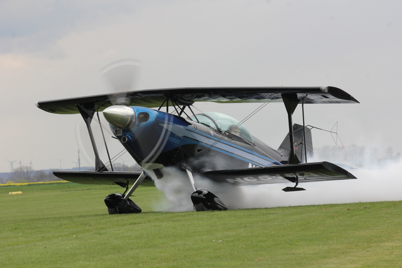 Parallel zum gewaltigen Aussteller-Aufgebot in und vor der Messe-Halle, steht draußen auf dem Flugfeld wieder durchgehend eine starke Airshow in den Startlöchern. Die Aussteller führen ihre Produkte live vor, dazwischen gibt’s Showacts von Europas besten Piloten. Und das Display einer originalen Pitts Special steht auf dem Programm. Natürlich darf auch die Aktionsfläche nicht fehlen, auf der wir Motoren, Turbinen, Schalldämpfer und Smoke-Systeme in Aktion erleben.