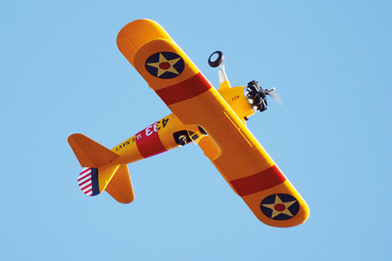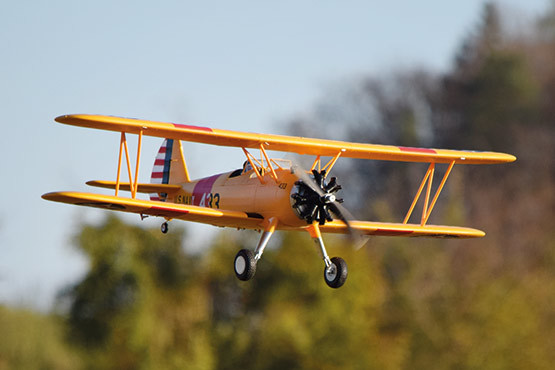 Doppeldecker üben eine besondere Faszination aus. Ihre Silhouette etwa vor der Abenddämmerung ist ein herrlicher Anblick und erinnert an die Zeiten, in denen das Fliegen noch ein großes Abenteuer war. Die unserem Testmodell zugrundeliegende, ab 1934 produzierte Boeing Stearman PT-17 ist zwar ein historisch relativ später Vertreter ihrer Art, aber ein wunderschöner. Den Testbericht finden Sie in der FMT 03/2018.