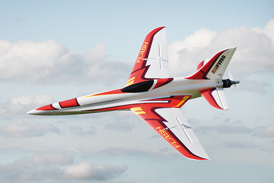 Ultralange Nase, schnittige Sichelflügel, ein Stummel von Leitwerksarm und ein Mordsmotor im Heck – der Flash trägt seinen Krawallo-Charme offen zur Schau. Wie der Blitz zuckt der 180-km/h-Schäumling über den Himmel. Einschlag und Donnerwetter soll das im Combo-Set installierte Reflex-Gyro-System verhindern. Es folgt der Flash-Flugwetterbericht in der FMT 12/2019.