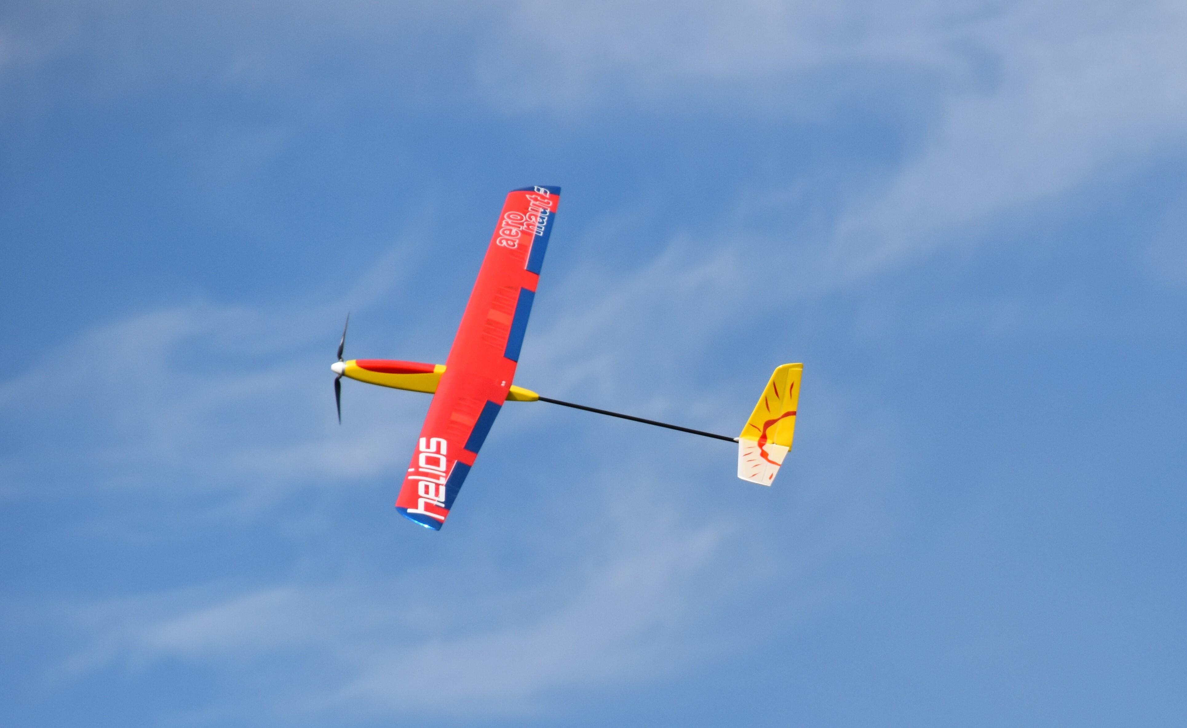 1.190 Gramm Abfluggewicht, 2,5 Meter Spannweite, vier Klappen. Und vorne im Rumpf des Helios steckt der neue actro-n-Außenläufer mit 28 mm Durchmesser und 890 kV. Christian Bruns gibt erst Halbgas, dann dreiviertel – und die 12×9“-Luftschraube zieht den Vogel nach vorne, als ob er sagen wollte: Lass mich von der Leine, ich will flieeeeeegeeen. Über Flug und Bau des neuen Helios berichtet Christian Bruns in der FMT 03/2021.